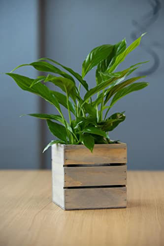 Wood Planter Box with Wine Crate Styled, 5 Inch Square, Rustic Barn Wood, Plastic Liner, Wedding Flowers Holder, Home and Venue Decor, (5x5 Wine Crate Set of 4)