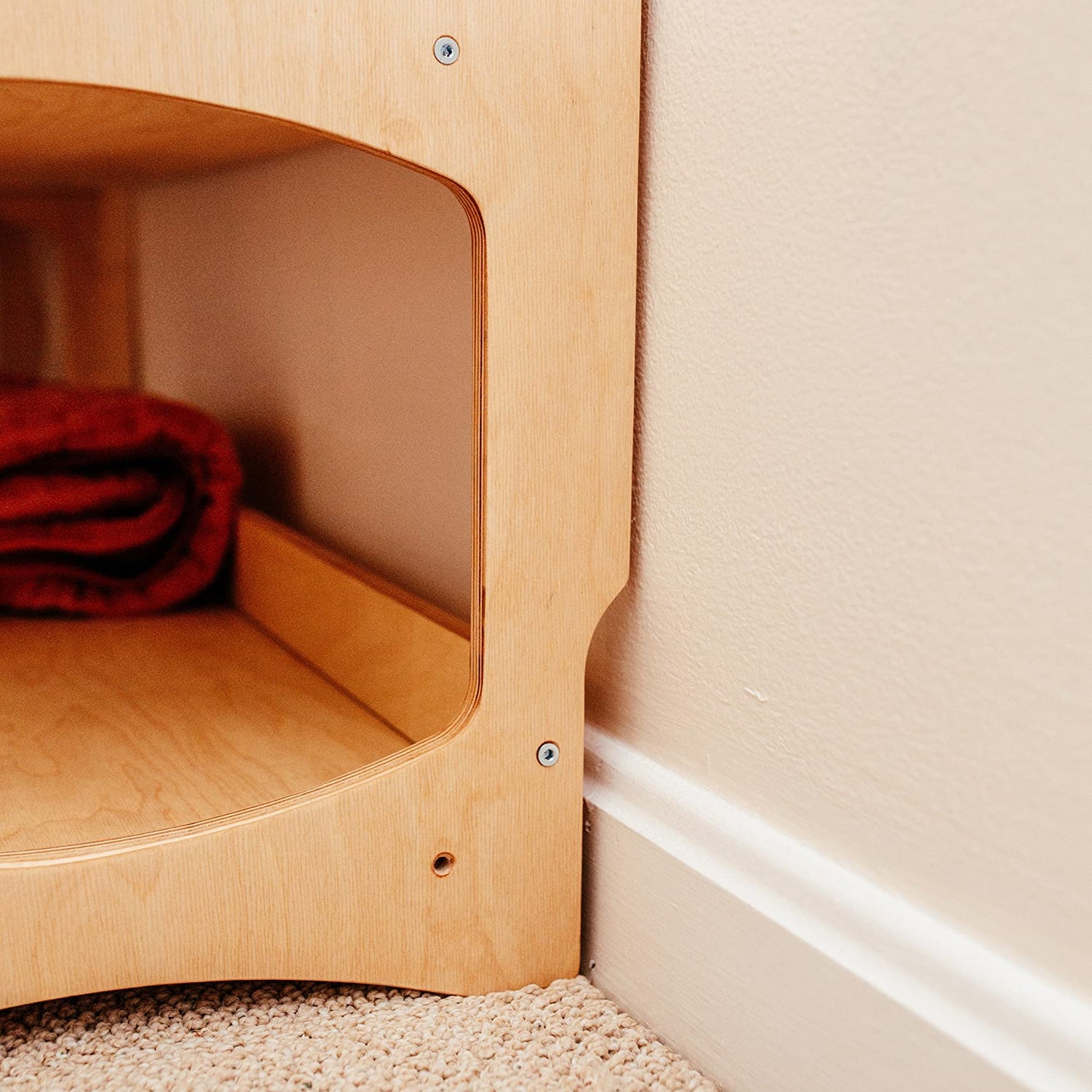- Sturdy wooden construction ensures the shelf will stand up to the wear and tear of daily use by young children.