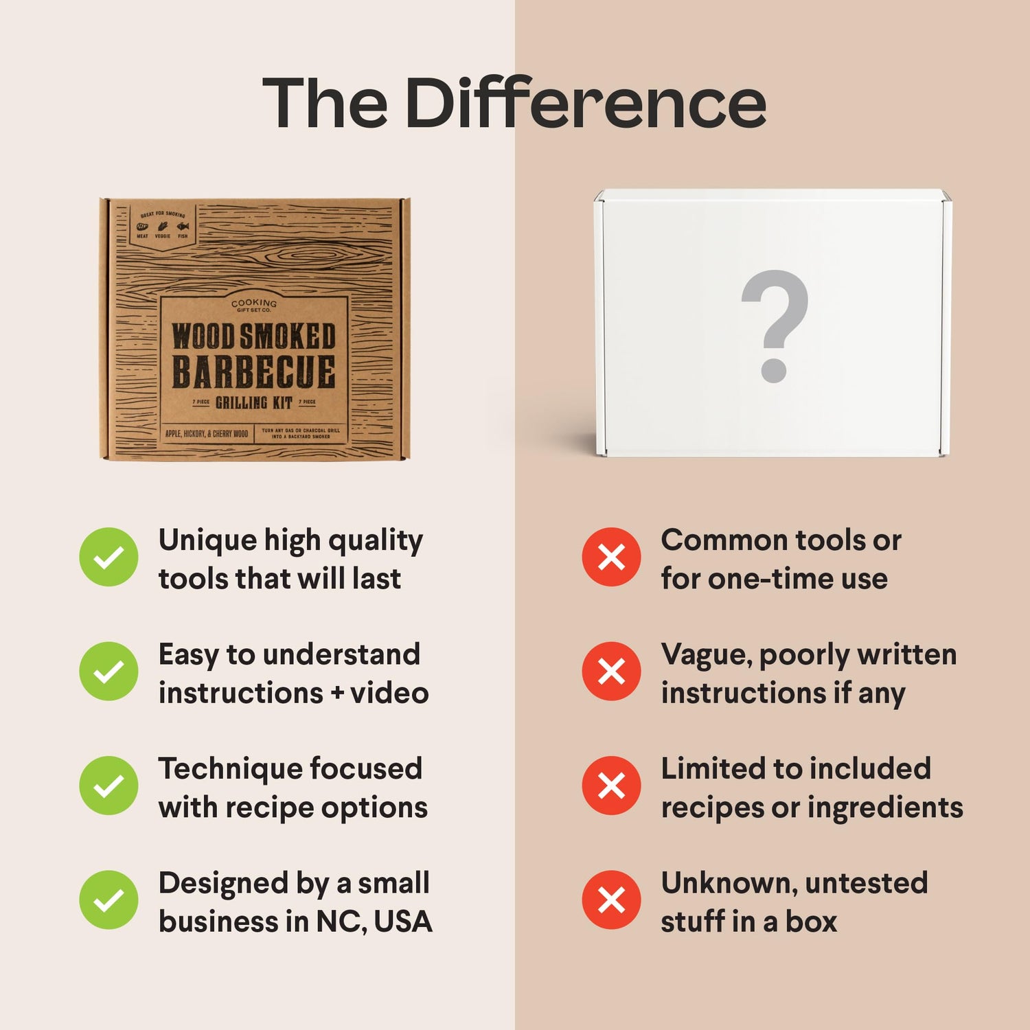 - All-Natural Wood Smoker Chips - Packed in the USA with no artificial flavors. We include hickory wood, apple wood, and cherry wood chips for grilling so you have options for your grilling set.