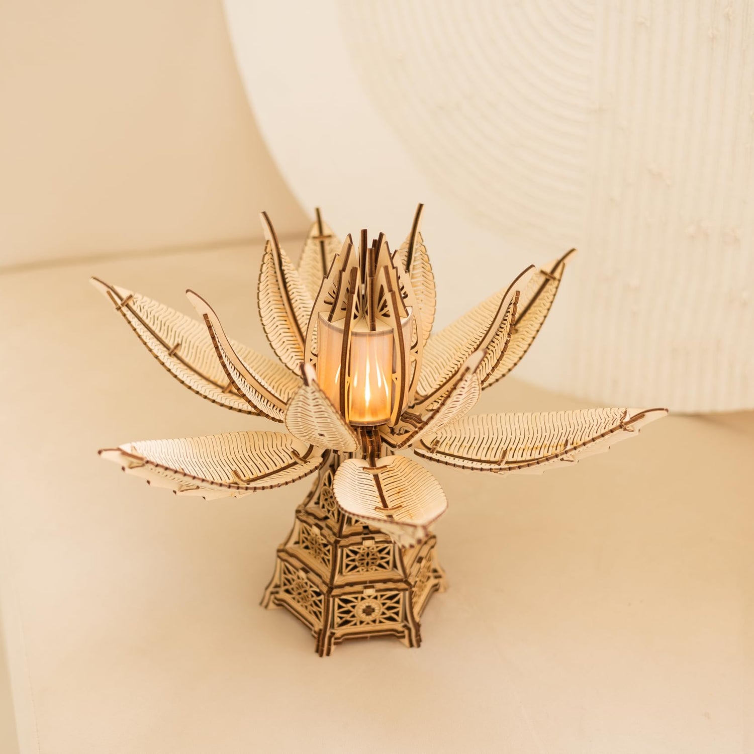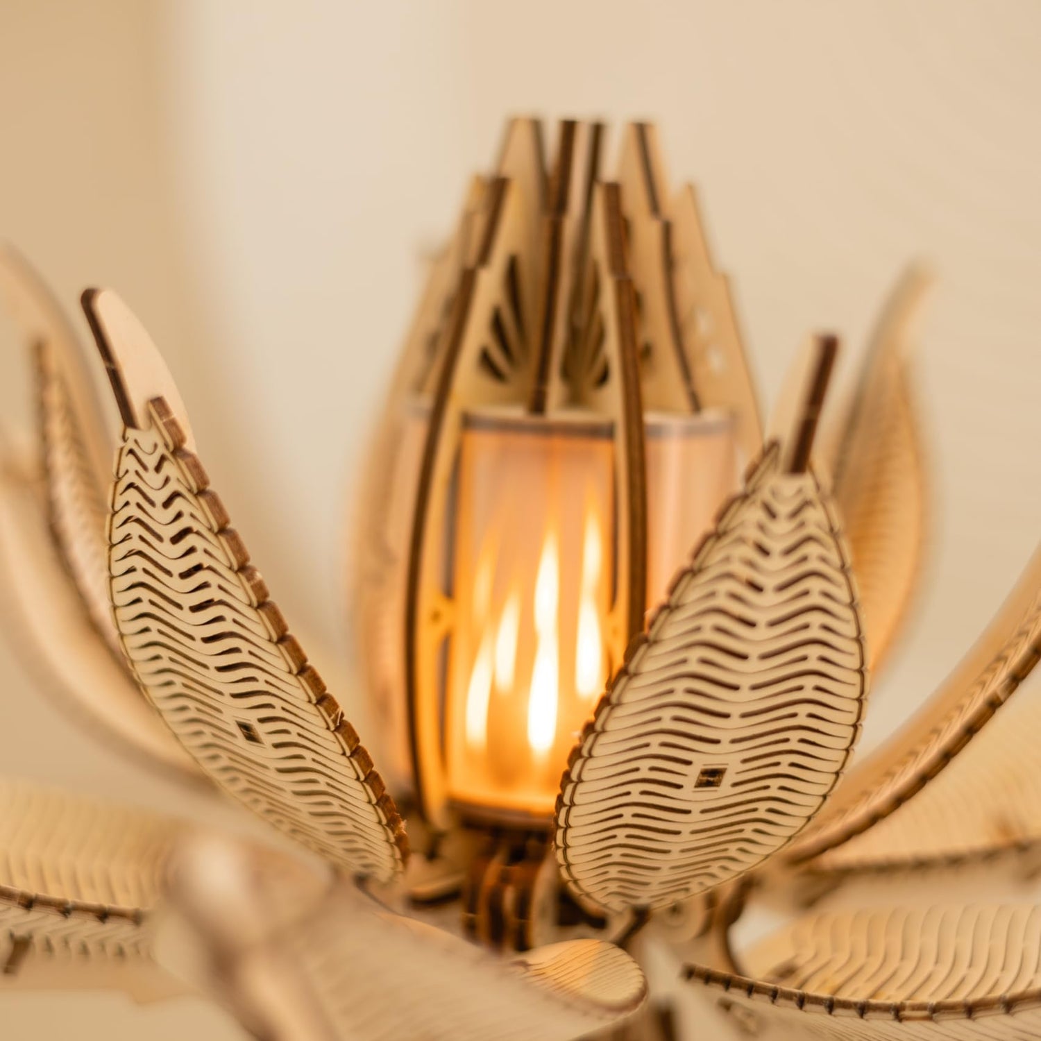 - DETAILED DESIGN - Developed by professional engineers, this wooden puzzle provides an incredible experience for fans of intricate assembly. A special mechanism moves and unfolds 12 petals on the upper section, while the lower section features On/Off buttons to activate the lighting and select the mode