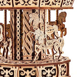 Wood Trick Parisian Carousel Wooden Music Box Kit - DIY 3D Puzzle for All Ages with Backlight