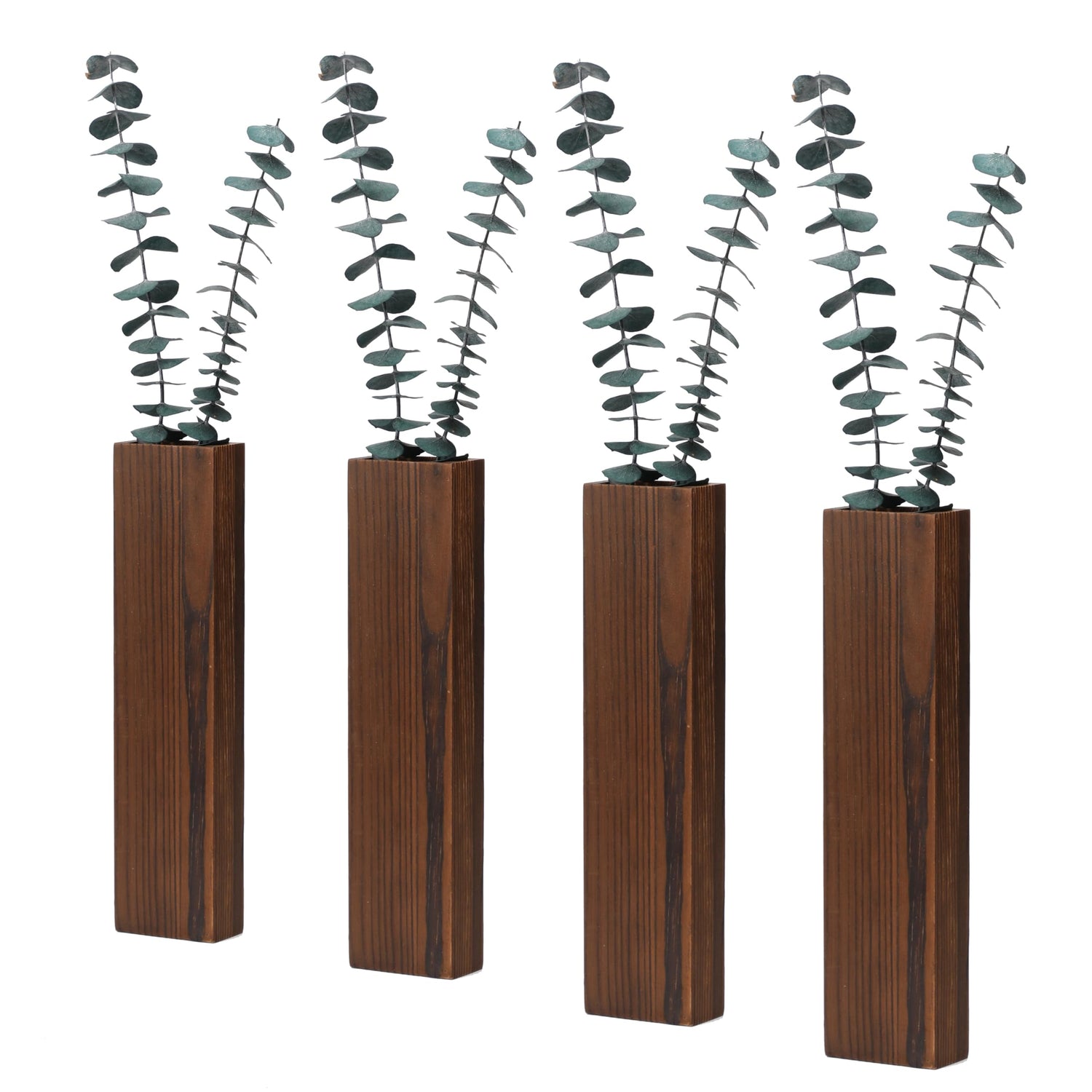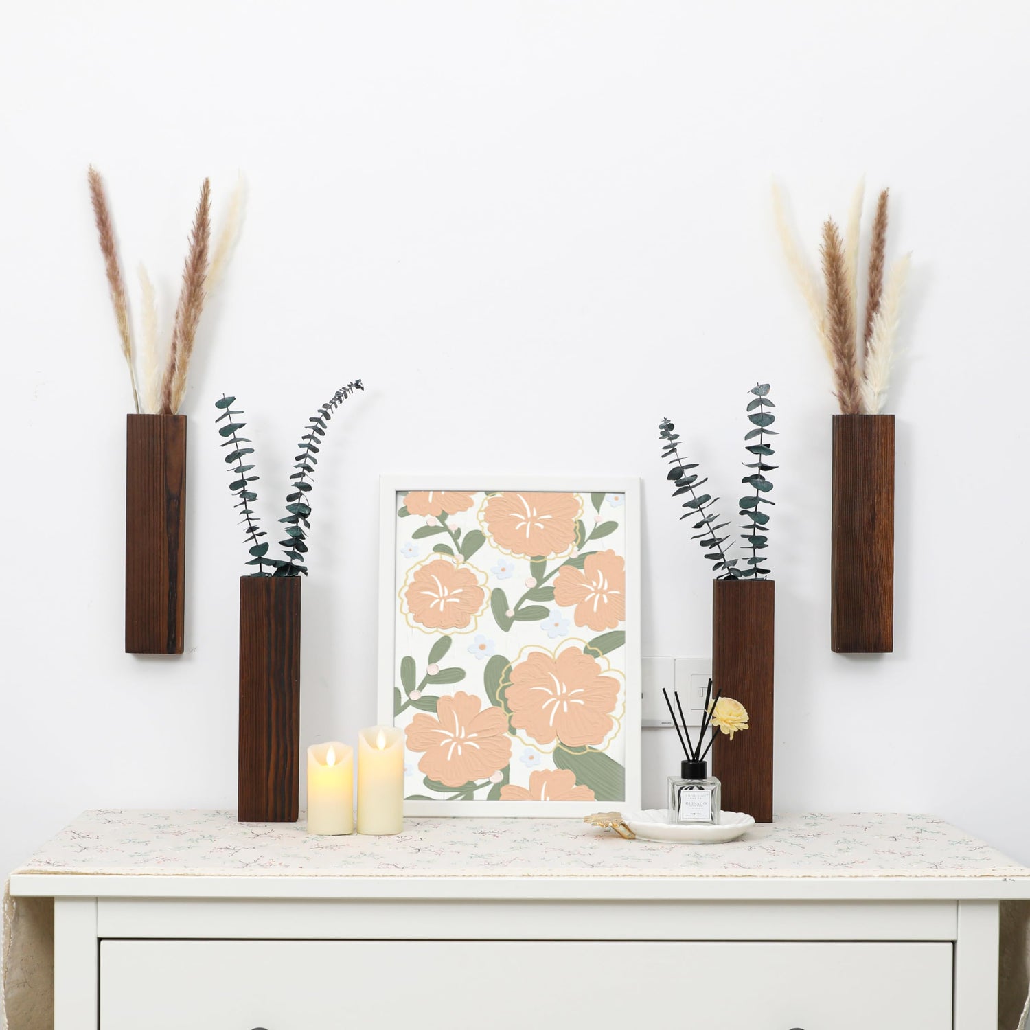 Wood Wall Planter 4 Pack Wall Decor for Artificial Flower Plants Wooden Plants Holders Wall Plant Pocket Vase Hanging for Living Room Bedroom Dining