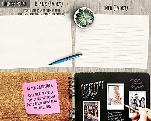 - BINDING: Album held together with 1" or 1.24" diameter wire binding. PAPER: available is heavier 24 Lb Ivory paper; Blank or Lined. We also offer Ivory Card Stock or black Card Stock heavy paper for those who want to use this for poloroids or photos. PAGE COUNT: number of pages can also be customized. Standard option is 40 sheets of paper= 80 pages, that can be upgraded to either 100 pages (50 sheets) for thick card stock guestbooks or 120 pages (60 sheets) for 24lb ivory paper.