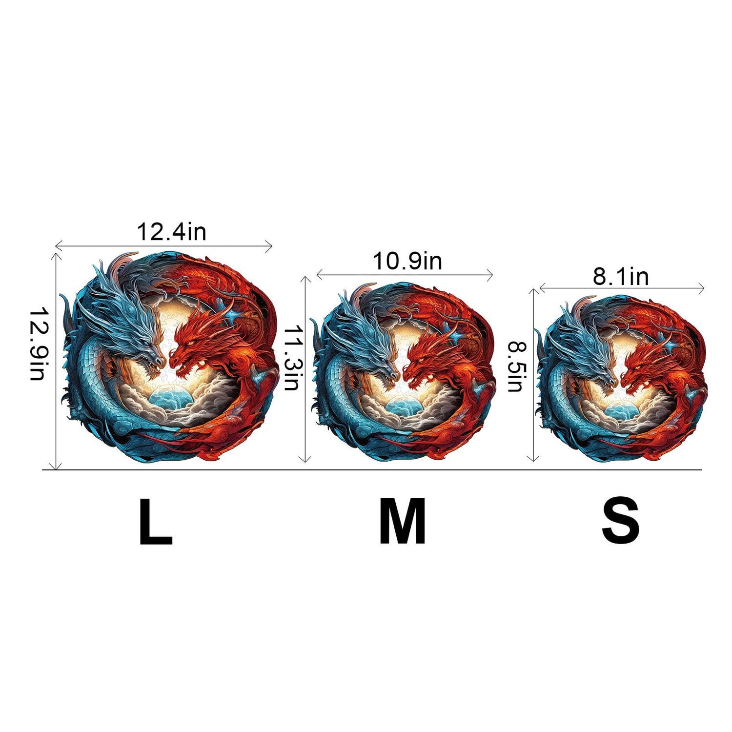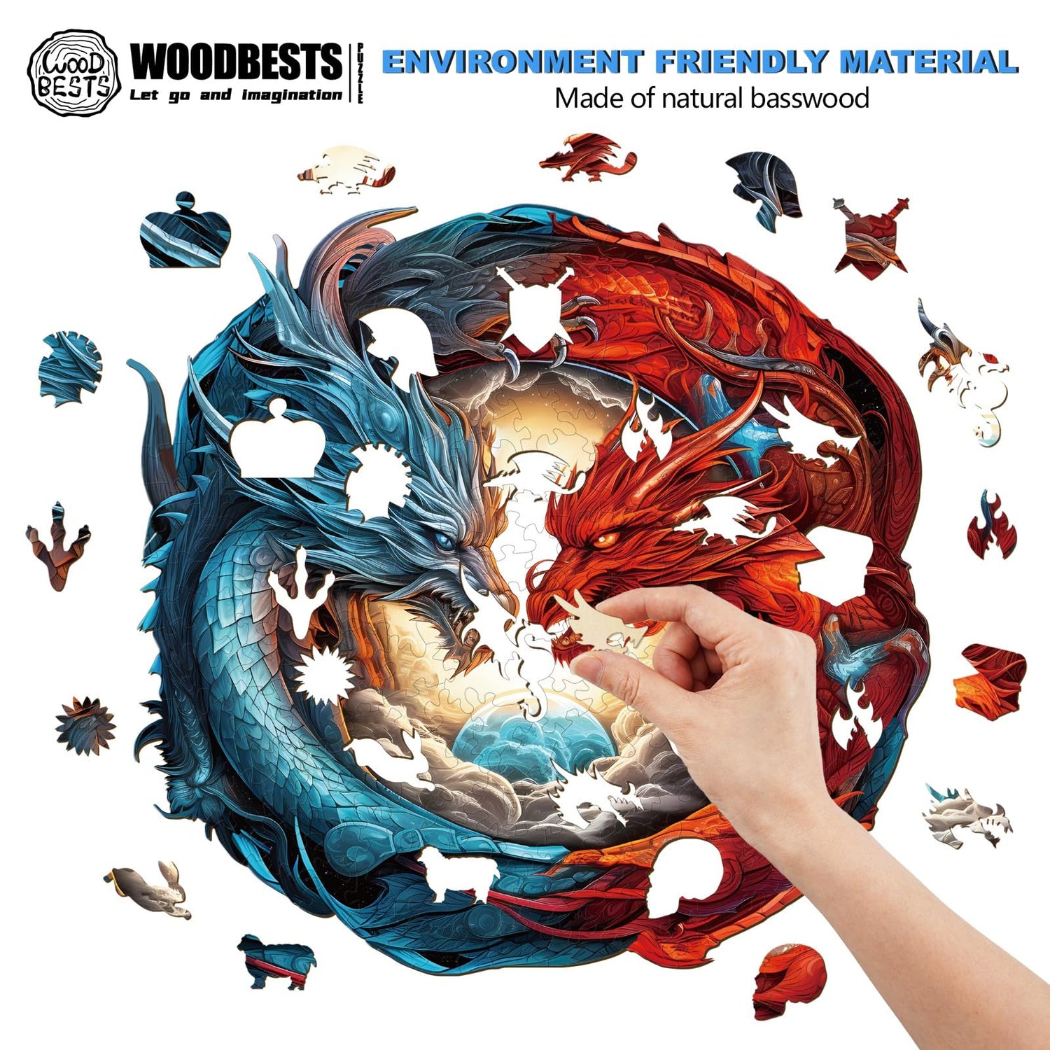 WOODBESTS Wooden Puzzle for Adults, Yin-Yang Dragon Puzzle (M, 200pcs, 11.3"x10.9") Beautiful Wooden Box, Wooden Jigsaw Puzzles Unique Shape, Birthday Gifts for Adults and Kids Family Game