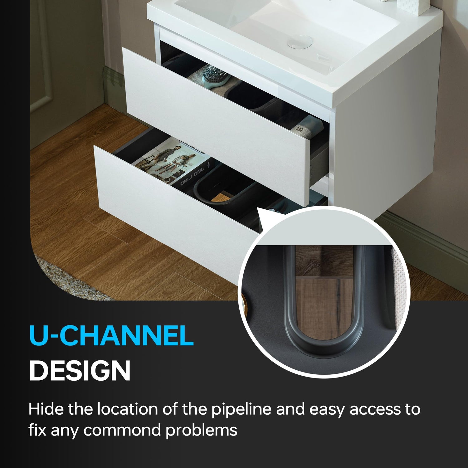 - ✅ [U-SHAPED DRAINAGE PIPELINE ACCESS]: Patented design U drawer with ultra-thin U-shape ABS material drainage pipeline access, separating toiletries from the plumbing for tidy look offering more storage space while keeping a nice look.