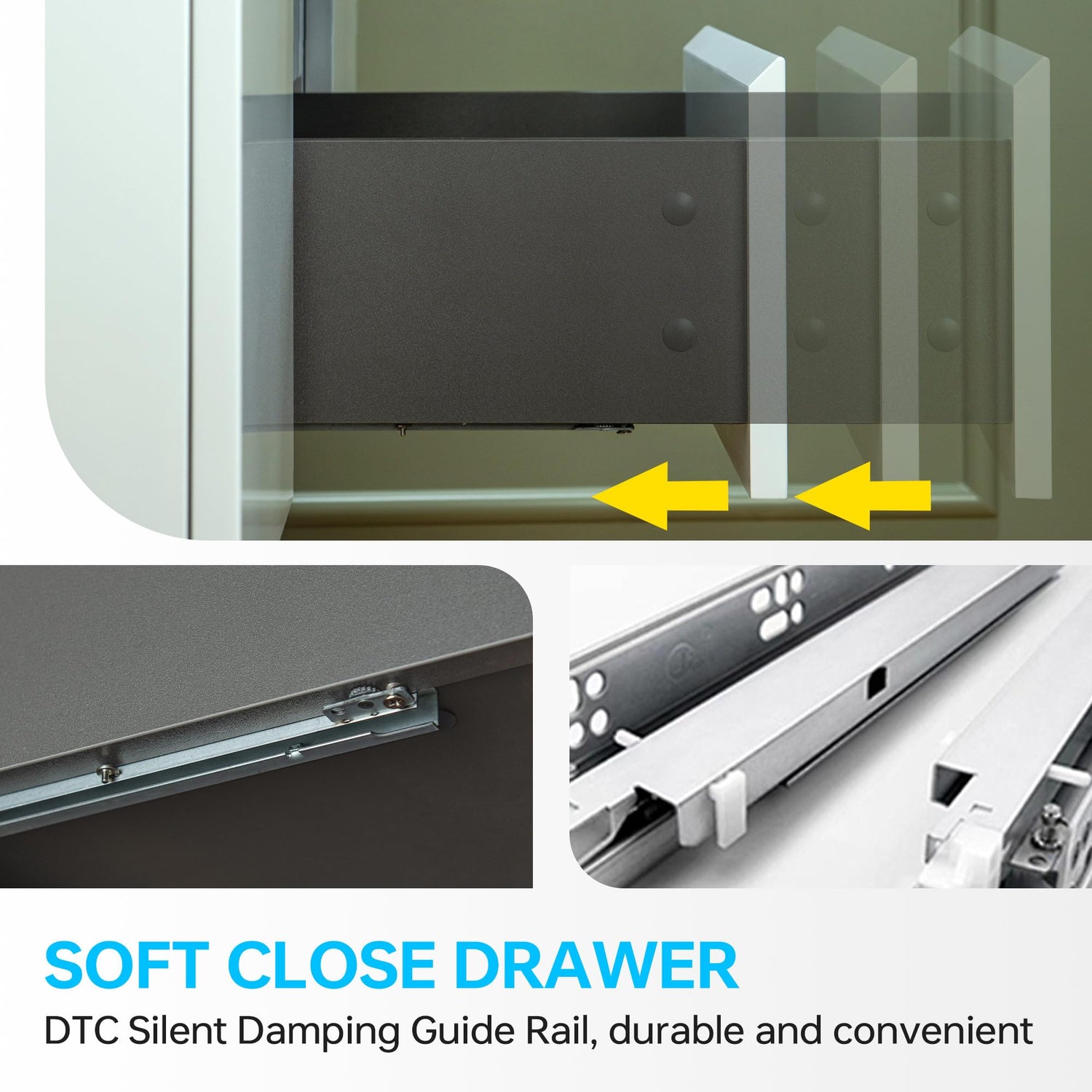 - ✅ [SOFT CLOSING & INVISIBLE HANDLE DRAWER]: Soft-closing drawer slides make you open or close quietly without any slamming noise, designed with 45° beveled invisible handles that are minimalist and modern style.
