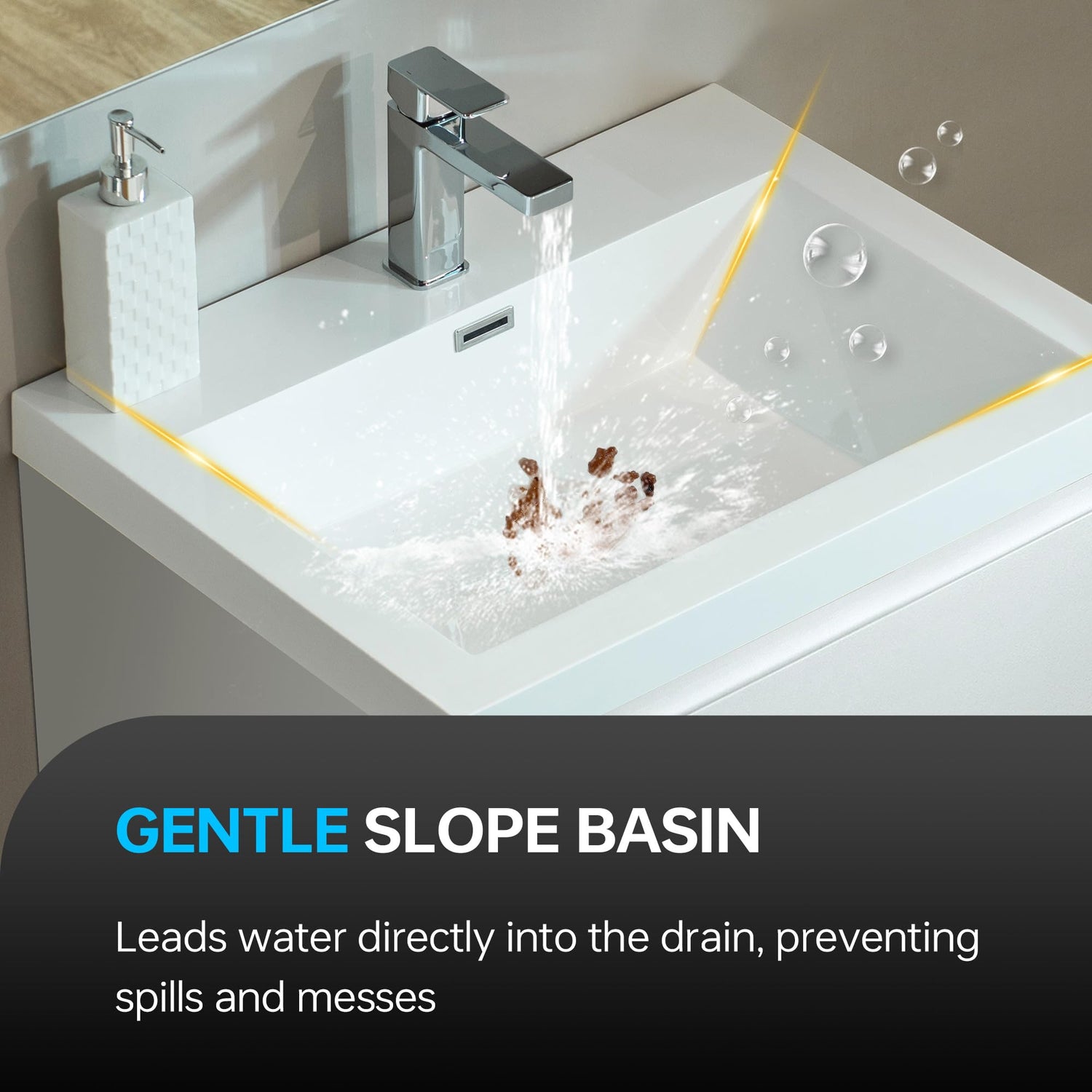 - ✅ [PACKAGE INCLUDED]: Faucet and Pop-Up drain are not included and are sold separately. The vanity top is pre-drilled with single-hole installation. Wall-hung vanity and vanity top in one carton.