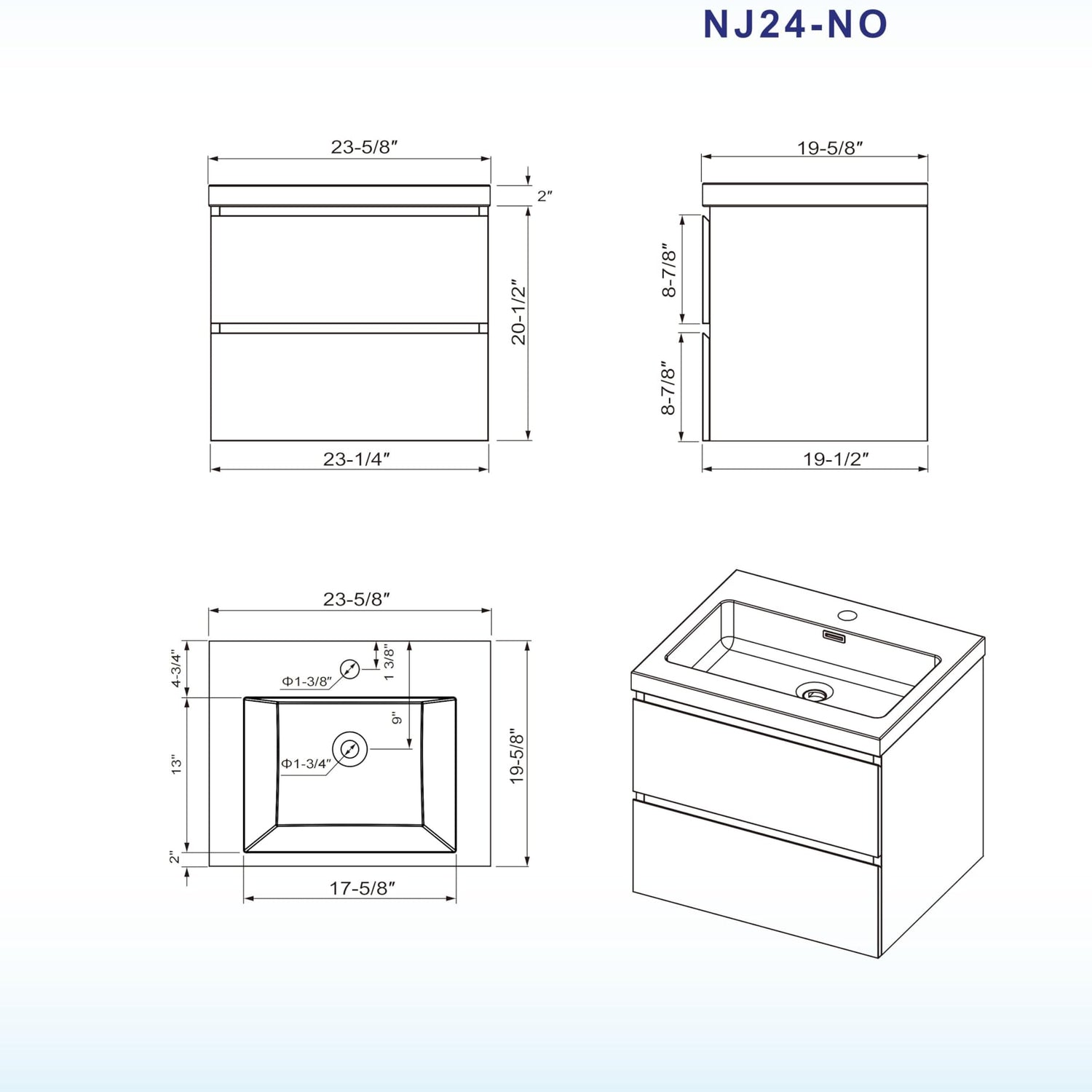 - ✅ [SPACE-SAVING DESIGN]: 23-5/8 in. W x 19-5/8 in. D x 22-1/2 in. H floating bathroom vanity maximizes storage in your bathroom and powder room. Mounting the vanity on the wall, frees up valuable floor space, making your bathroom feel more open and spacious
