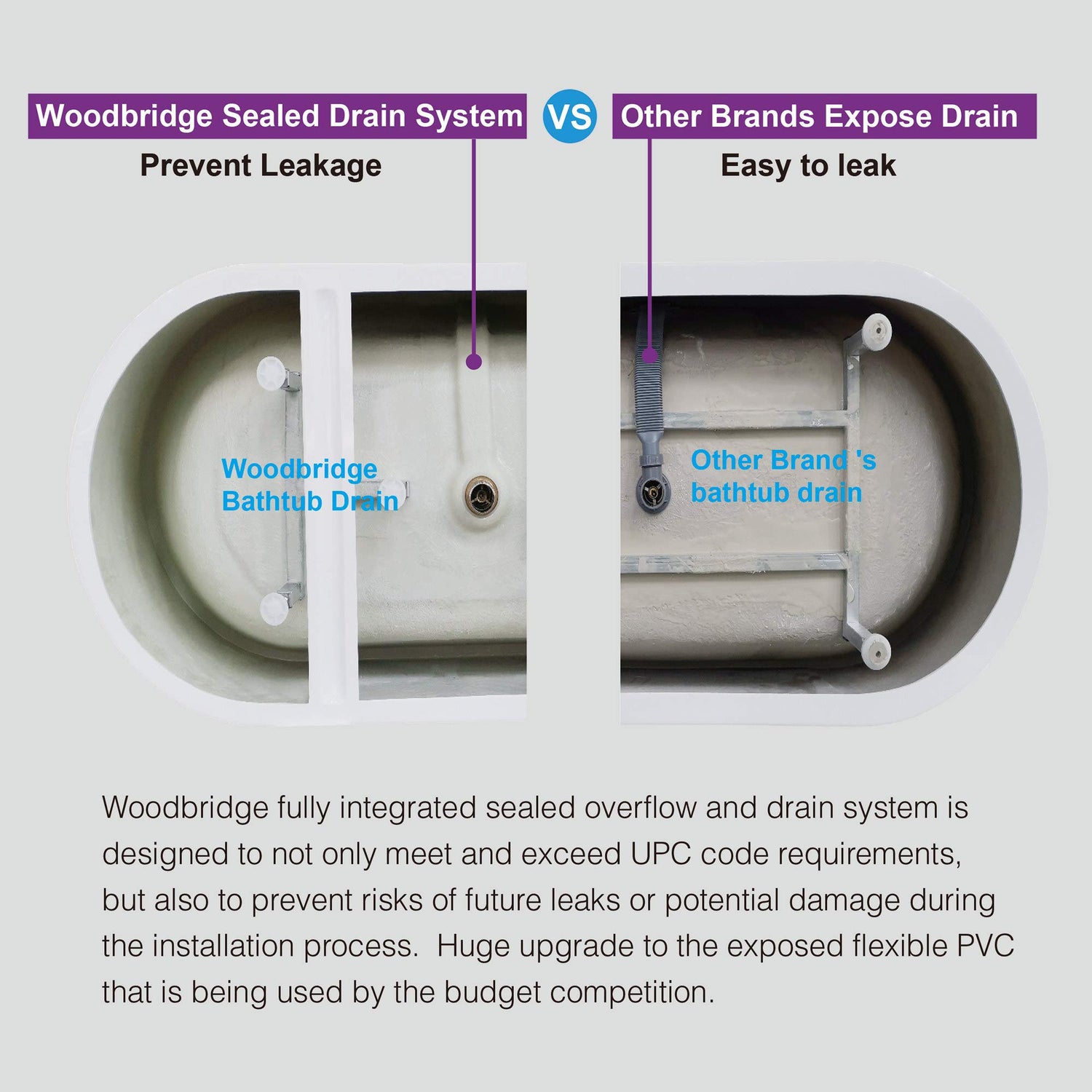 - ✅ [DESIGN INSPIRATION]: WOODBRIDGE bathtub is luxury, comfy, and chic. Its size is ample yet economical, allowing it to fit a variety of spaces. The gently sloping lines follow the natural curves of your body, providing exceptional comfort.