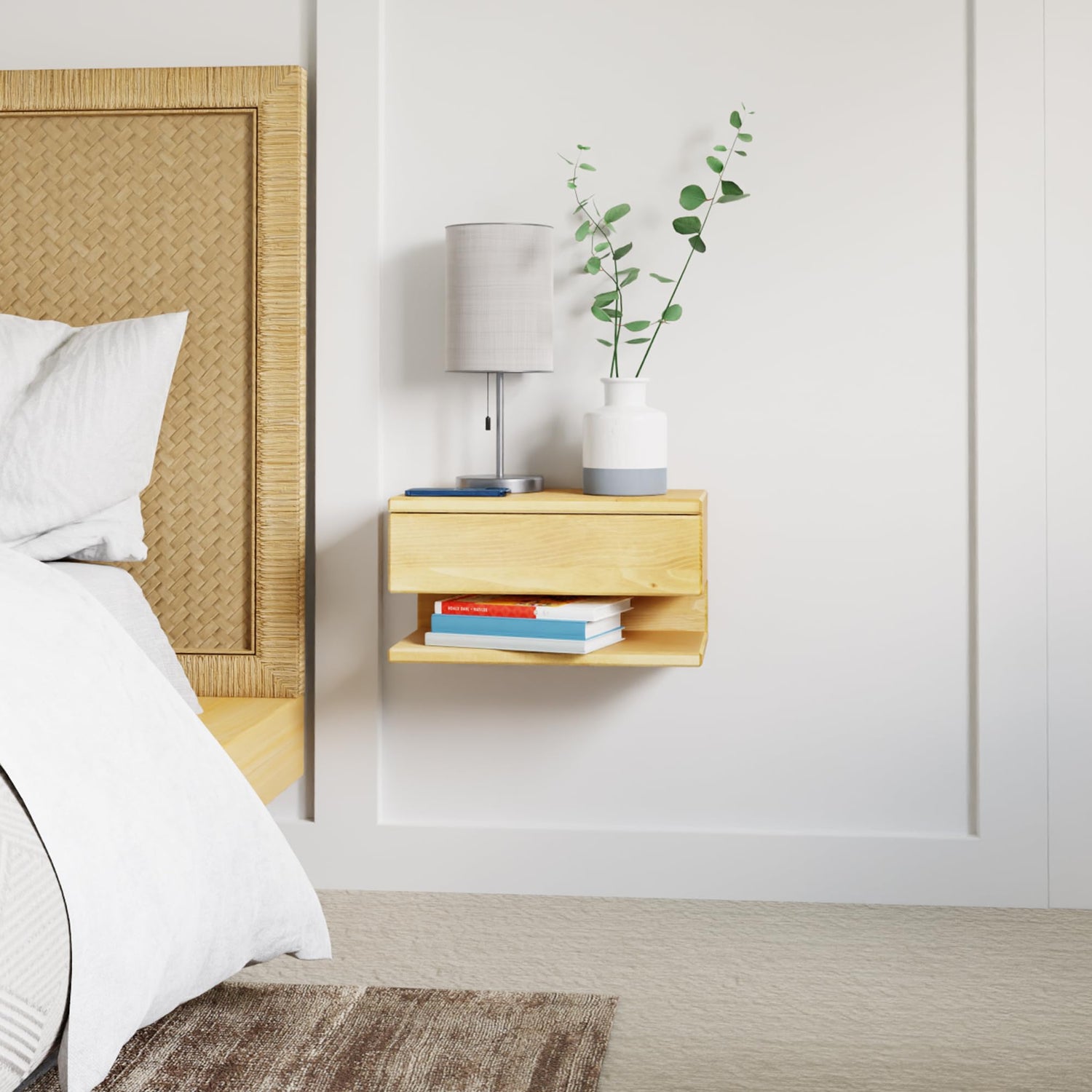 - SPACE SAVING DESIGN: Our small bedside tables are the perfect answer to your small space storage solutions. Because of its wall-mounted design, this small nightstand maximizes storage space by freeing up valuable space below.
