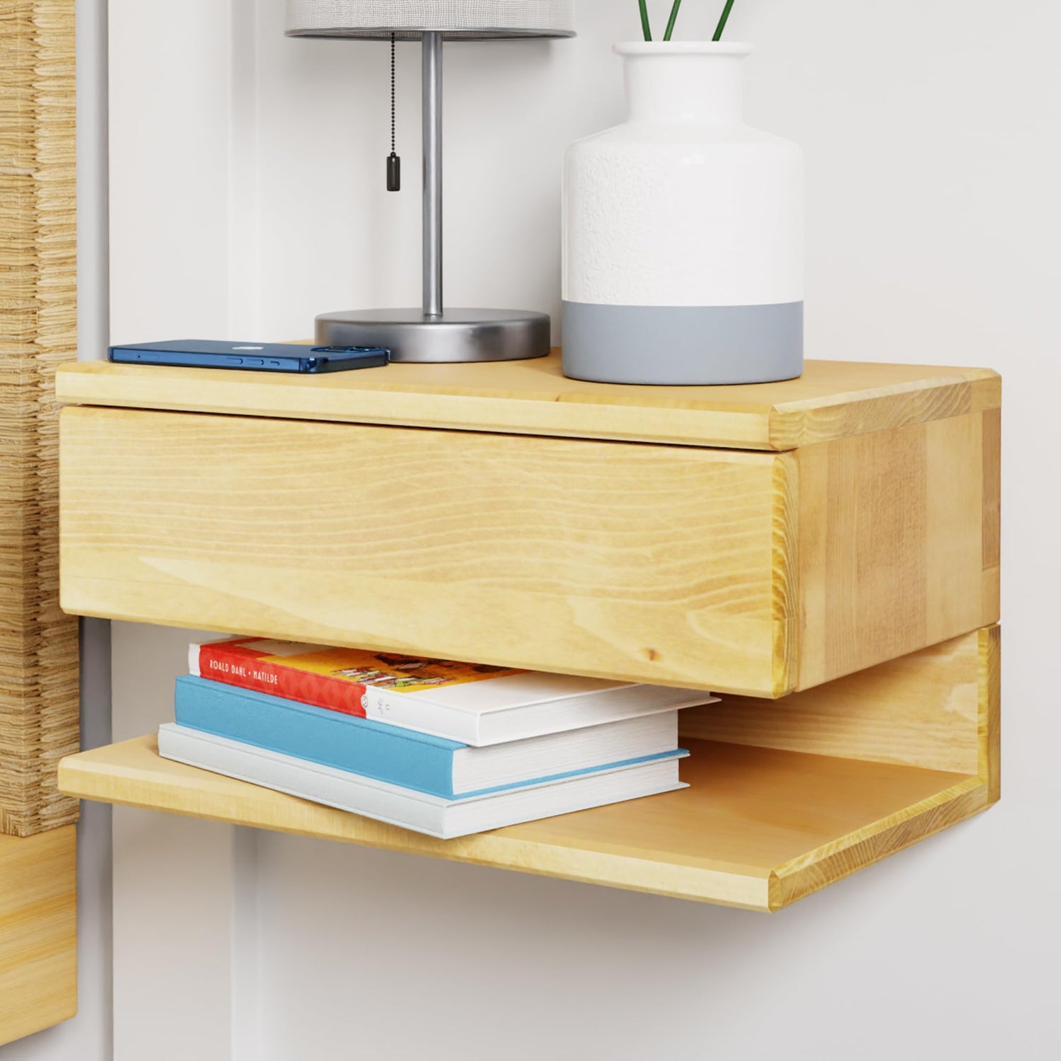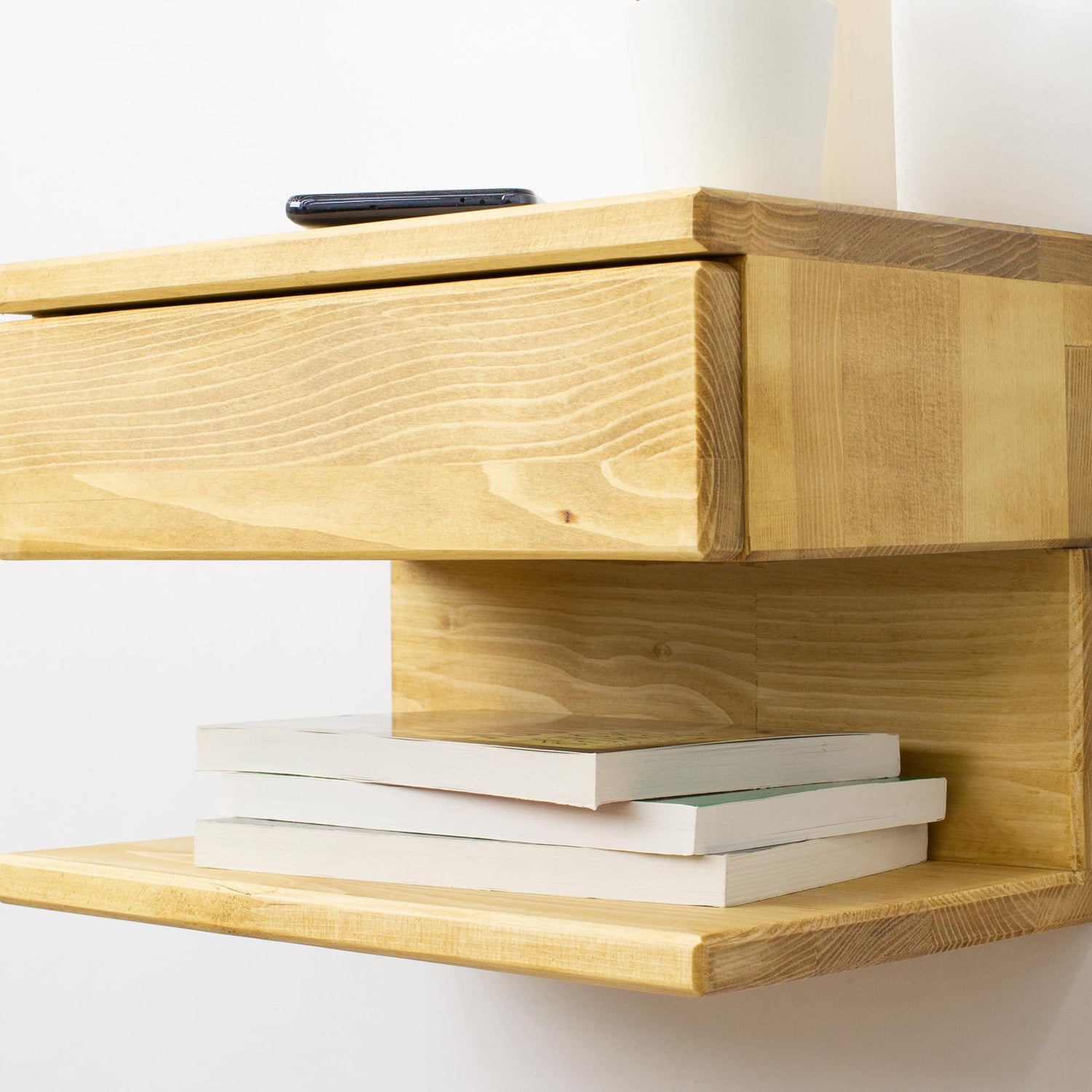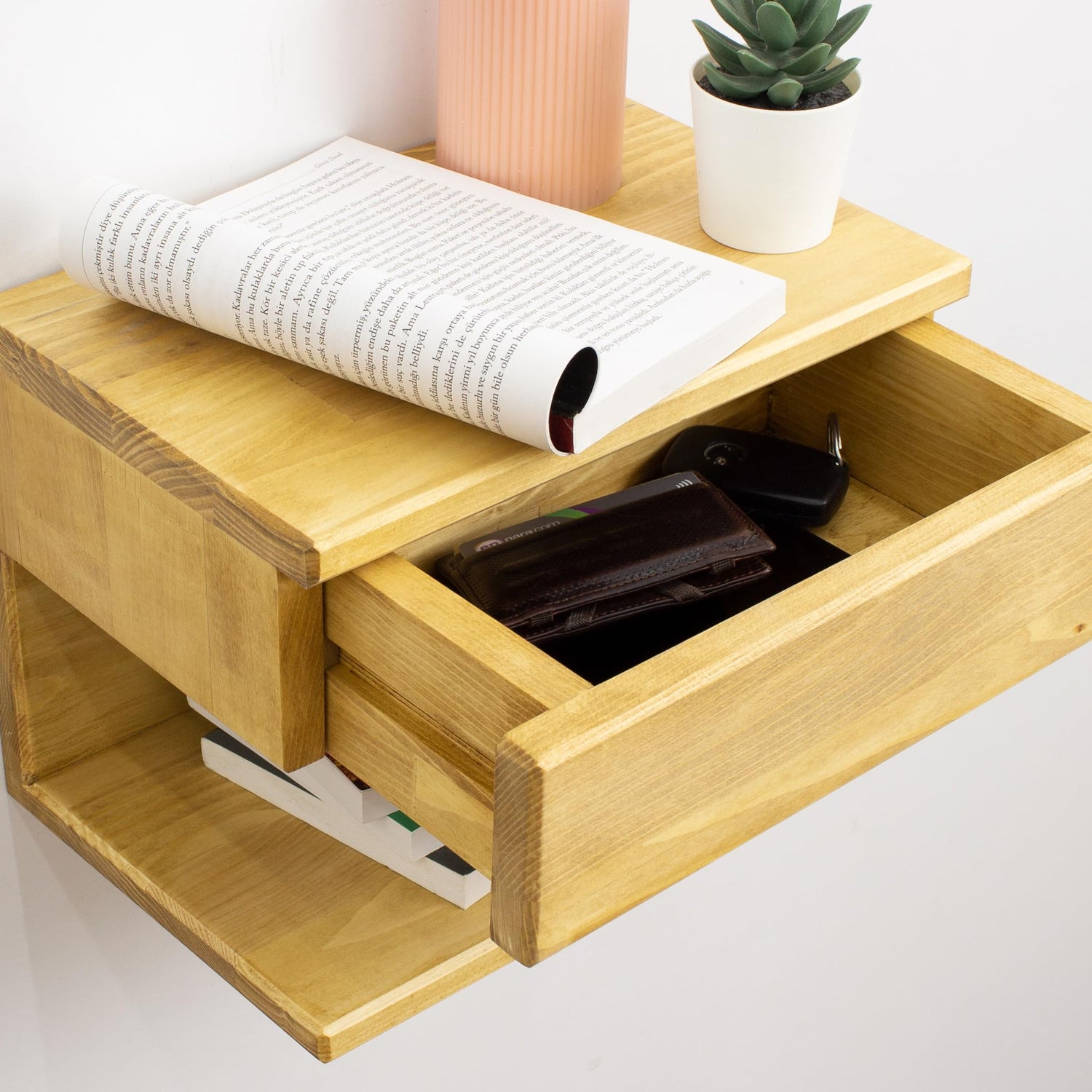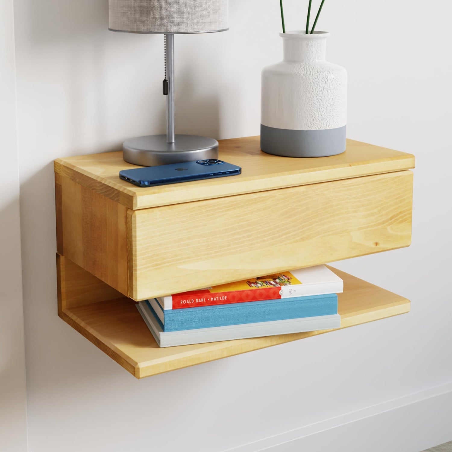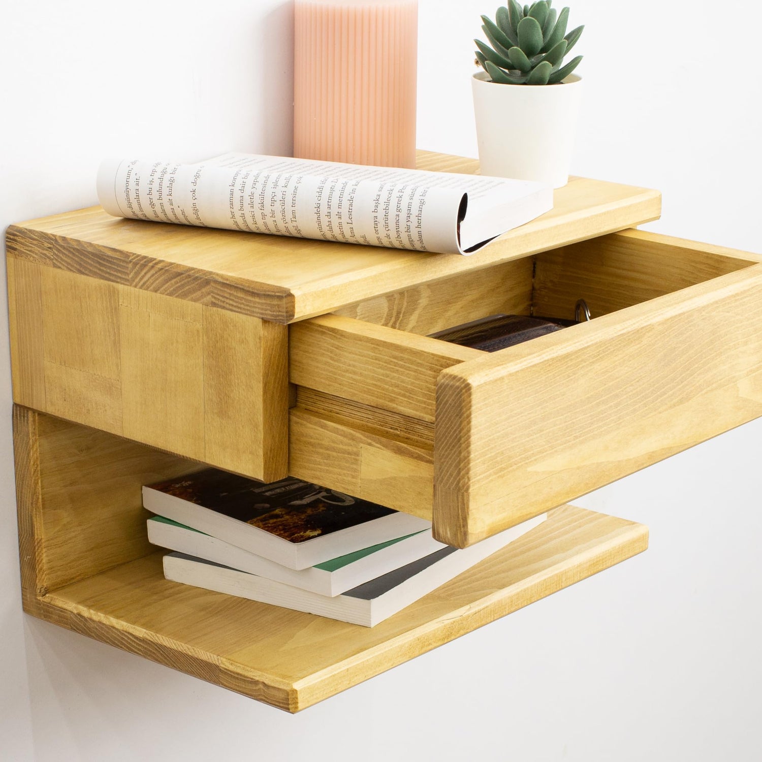 WOODCHES Floating Nightstand Side Accent or End Table with Storage Drawer, Wood Bedside Shelf, Handmade Floating Table (MADRID)