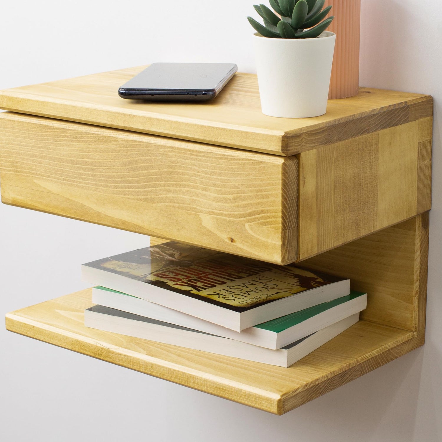 - AVAILABILITY: This durable wooden floating nightstand can fit all your bedroom essentials like lamps, cell phone chargers, books, diffusers, and more.
