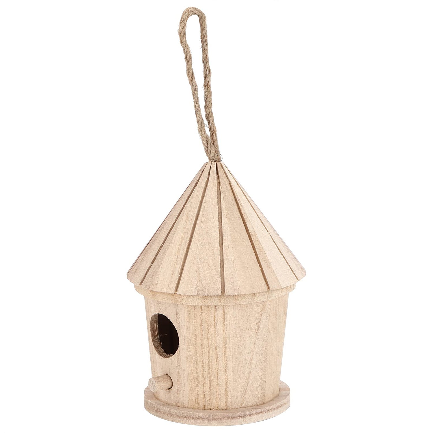 Wooden Birdhouses, Unfinished Natural Wood Bird House Round Outdoor Hand Painted Hanging Bird House Garden Patio Decorative