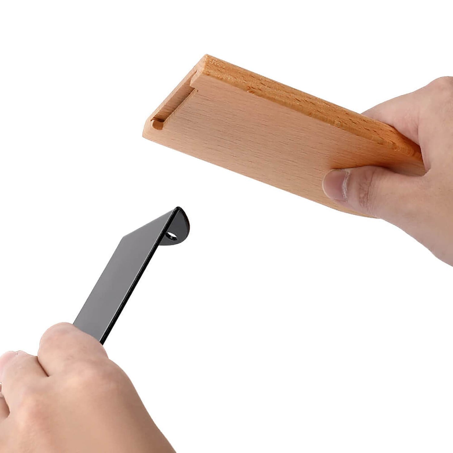 - PREMIUM MATERIAL - The book stoppers are made of wood, so each one has a unique natural wood grain on back with the heavy sturdy metal on the bottom.Thick design, rounded corners designs dose not hurt your hands.