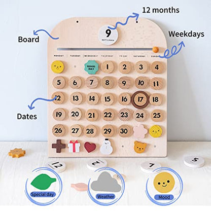 Wooden Calendar,Montessori Calendar for Kids to Learn Seasons, Toddler Preschool Calendar,Preschool Calendar for Kids Learning at Home and Classroom
