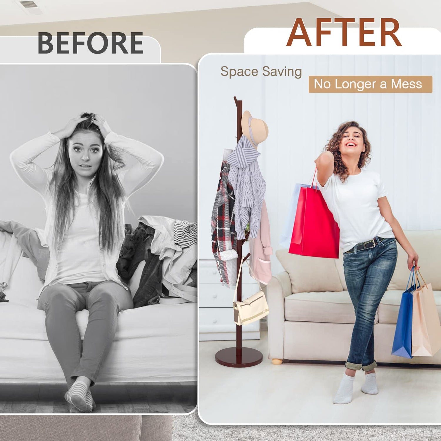 - 【WIDE RANGE OF APPLICATION】 This multi-purpose coat hanger stand can easily accommodate a variety of clutters. It can be placed in the entryway, living room, bedroom office and other places. It is strong enough to support multiple heavy items, it won't wobble or tip over even when fully loaded.