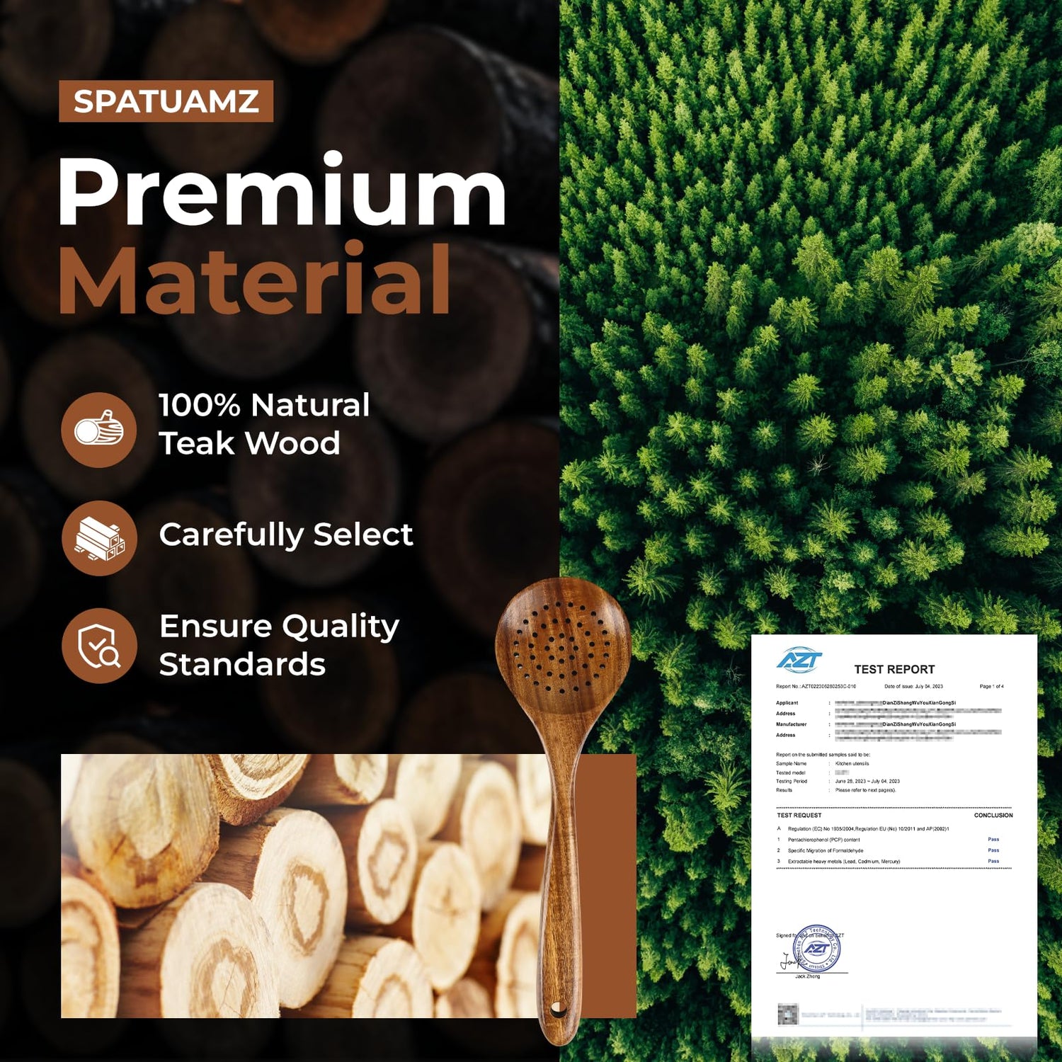 - Hanging Hole Design & Easy to Store: Each Teak Premium Cooking Spoons features a convenient hanging hole design, allowing for easy storage and organization in your kitchen, keeping your space tidy and stylish.