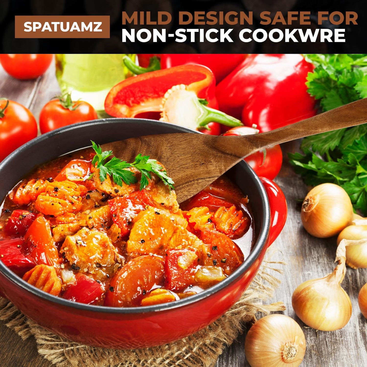 - Premium Material: Our Wooden Cooking Spoons and Spatula Set is crafted from high-quality natural teak wood, ensuring durability and longevity while providing a beautiful finish that enhances any kitchen.