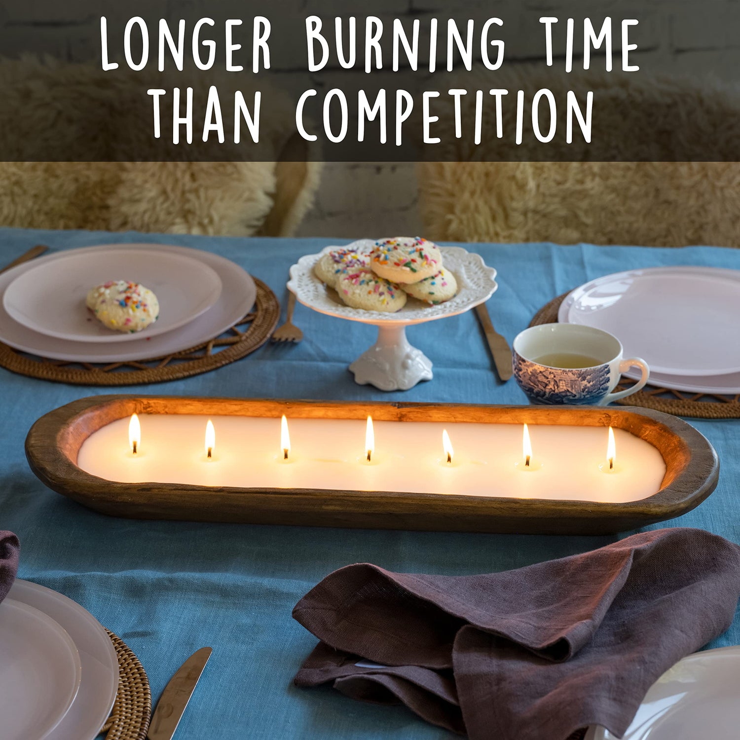 - 100% Cotton Wicks - Our farmhouse dough bowl candle has 7 wicks that are free of nasty lead; Dough bowl candles for table centerpiece or entryway wood bowl candle decor