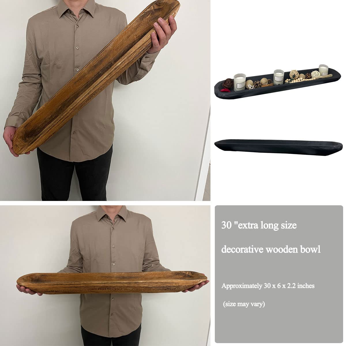 Wooden Dough Bowls Decorative,Rustic Bread Long Bowls Decor Wood Tray, Hand Carved for Table Centerpiece Decor, Home Decor (30 * 6 * 2 inch Black)