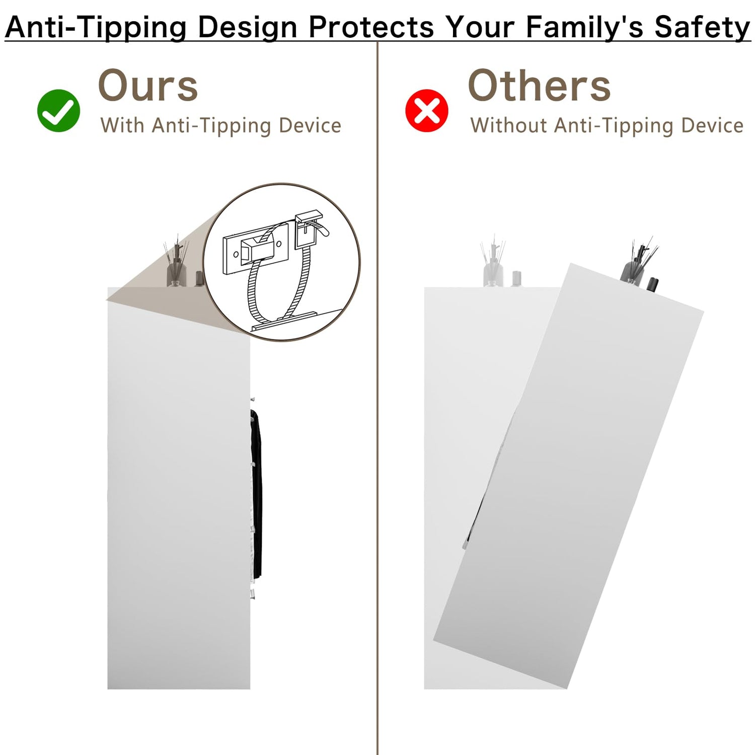 - 【With USB Ports and Power Outlets】The dresser with hanging rack has built-in 2 USB ports and 2 AC outlets on top, allowing you to charge mobile devices such as mobile phones, keyboards, headsets, desk lamps and other appliances at any time. Easy to use within your arm's reach. 4.9ft power cord for easy wiring.