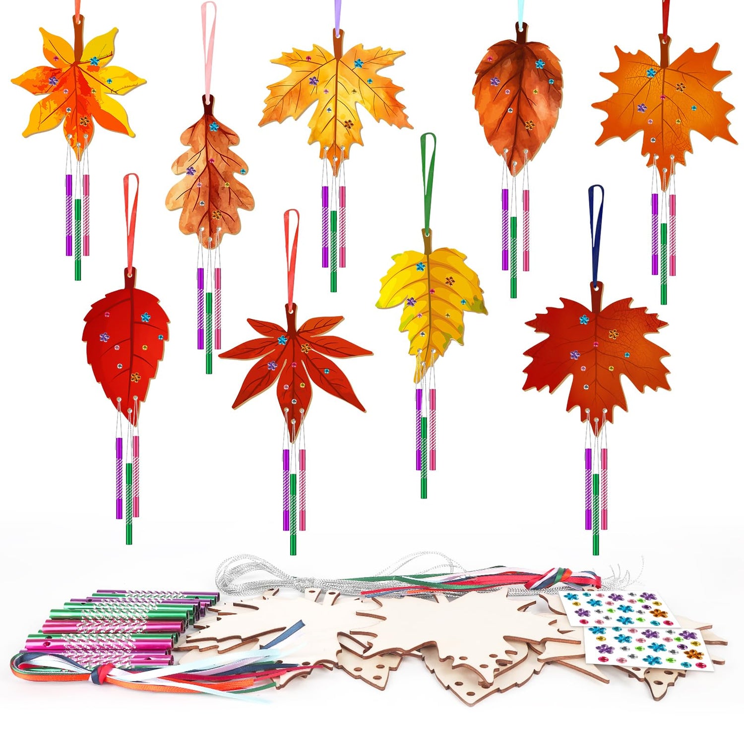 - Wind Chime Kit: This fall wind chime kit comes with 27 colorful wind chime tubes, 10 meters of silver string, 9 color ropes, and 4 rhinestone stickers. A wonderful DIY activity, suitable for all kinds of handicraft projects, from children's handicrafts to DIY gifts. It can enhance imagination and hand-eye coordination ability