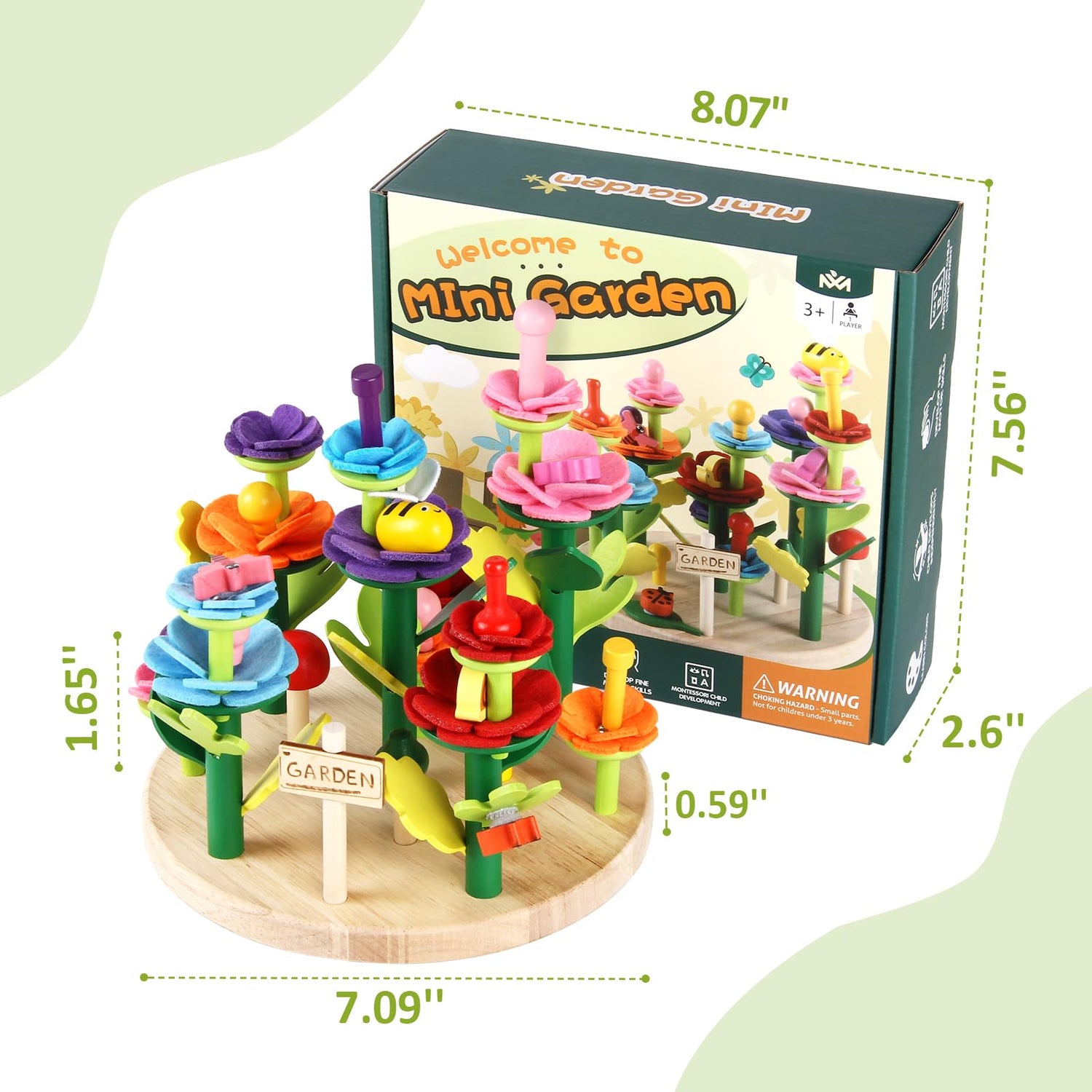 - Educational STEM Toy: Our mini garden toy has a large number of parts that can be combined as you wish to create different flowers, allowing your child's creativity to blossom. In the process of assembling the wooden flower parts, it improves kid's hand-eye coordination and fine motor skills, and develops their aesthetics sensibilities as well as their artistic talents