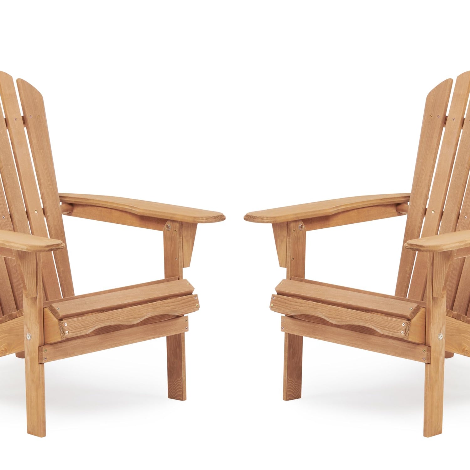 - [Pure Natural for Family]: Outdoor Wooden Adirondack Chair is made of solid wood, ultra fine wood grain, long-term anti-corrosion, waterproof, and natural wood smell