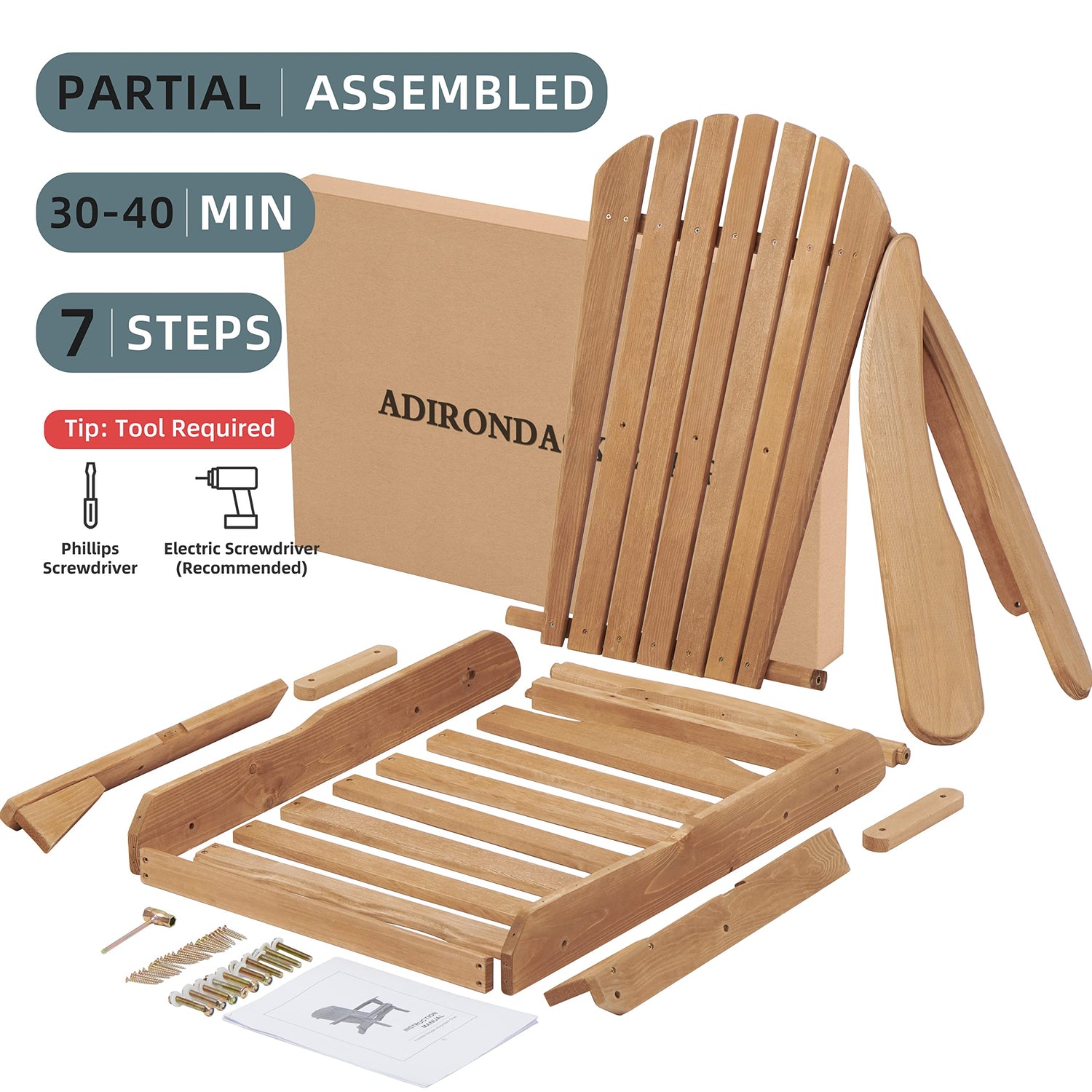 - [Half Assembled]: Enjoy a hassle-free assembly experience. Folding Adirondack Chair backrest was pre-assembled, only need 30-40 minutes to put rest of a few parts together