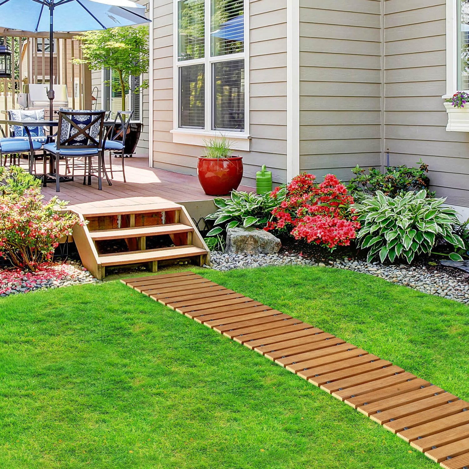 - 【Extended Length】The garden pathway walkway measures 8FT in length and 15INCH in width, composed of 34 solid wood. The walkway features a perfect size for creating a charming and functional pathway in outdoor space. This boardwalk with non-slip surface improves safety and stability while walking