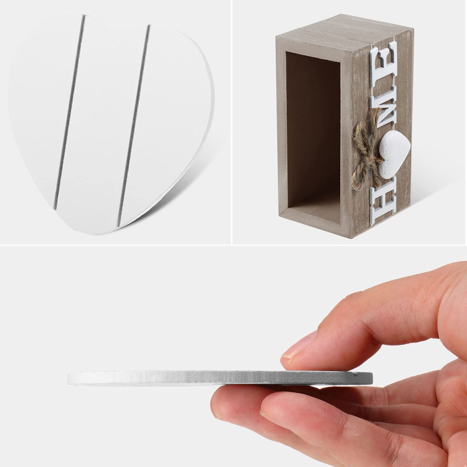 - Farmhouse coaster with holder set: there are 6 pieces of wooden heart coasters (4 inch) and a storage box, enough quantity and classic style to meet your use and replacement needs