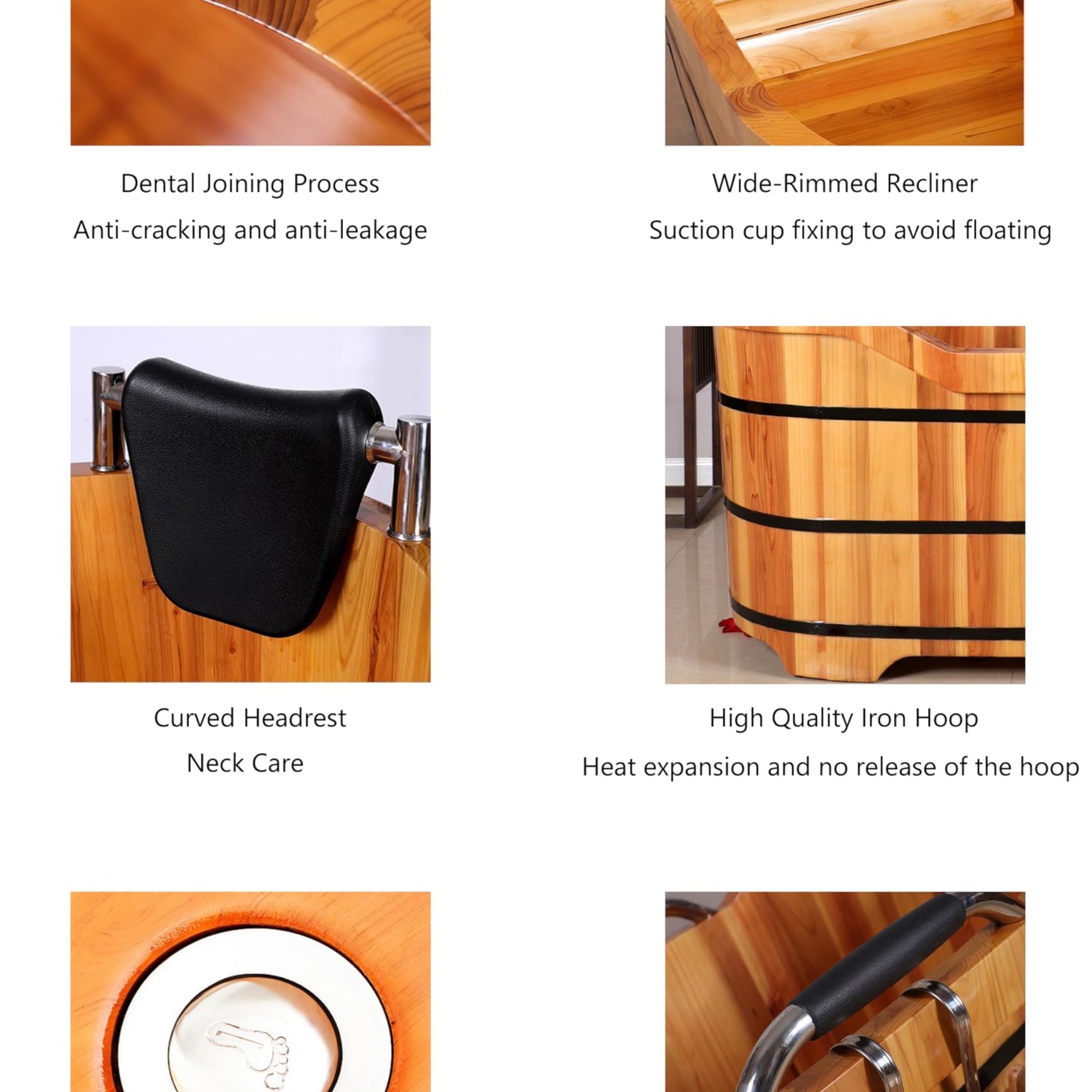 Details: Introducing our wooden, freestanding hot tub - the perfect addition to any backyard oasis! Measuring 47.24 inches in length, 23.62 inches in width, and 28.74 inches in back height, this tub is suitable for people of 160-165cm height. The barrel alone weighs about 20kg and after packing, it weighs about 31kg. The stainless steel armrests, scoop, drain valve, and headrest, along with the hanging basket made of cypress wood, provide comfort and convenience during your soak. The natural wood material and hot-dip galvanized Q235 barrel hoop prevent rusting, ensuring long-lasting use. This extra deep soaking tub can be heated with a wood-fired hot tub heater, providing both hot and cold plunge options. It's also accessible and perfect for corner spaces. Get ready to relax and unwind in your own backyard paradise with our wooden hot tub!