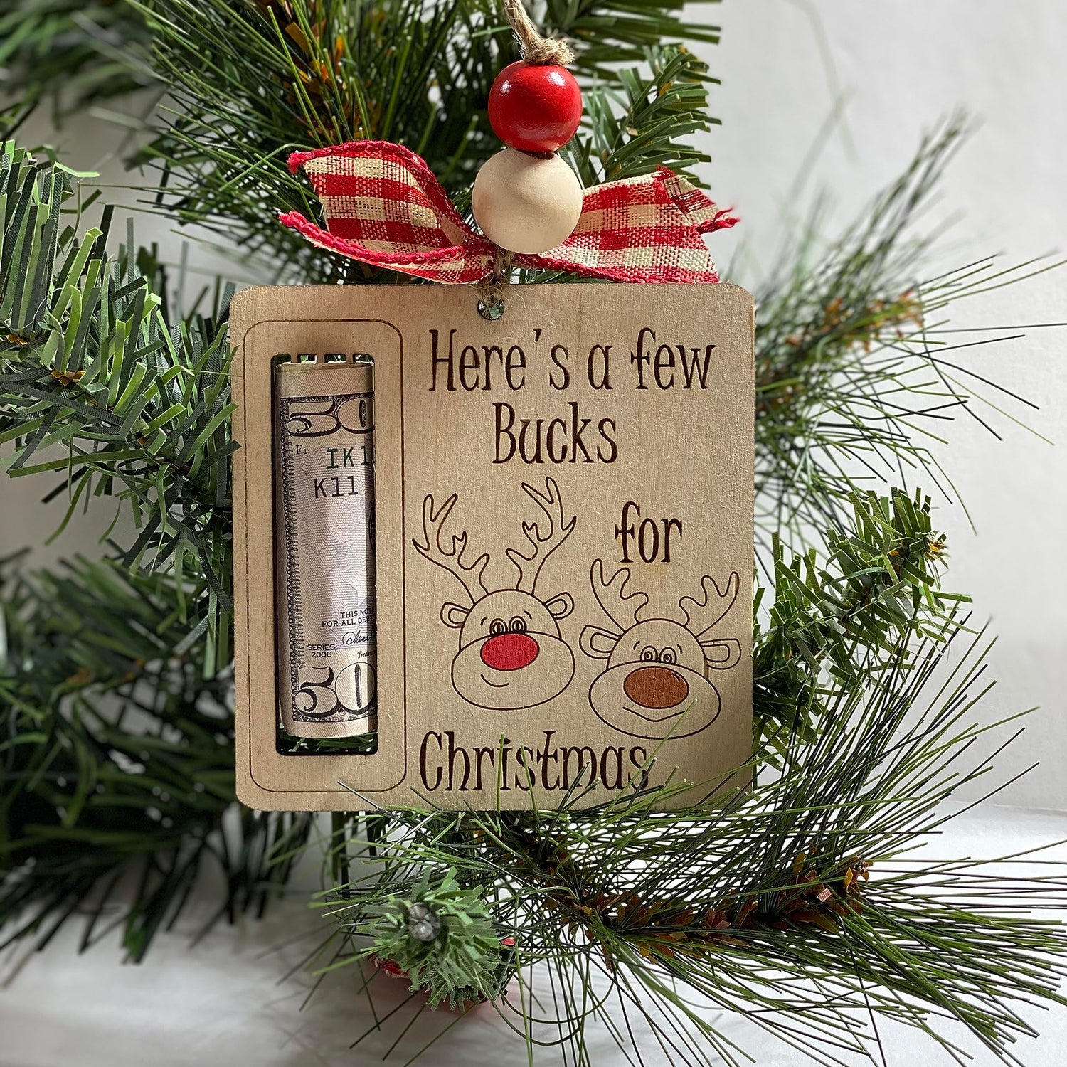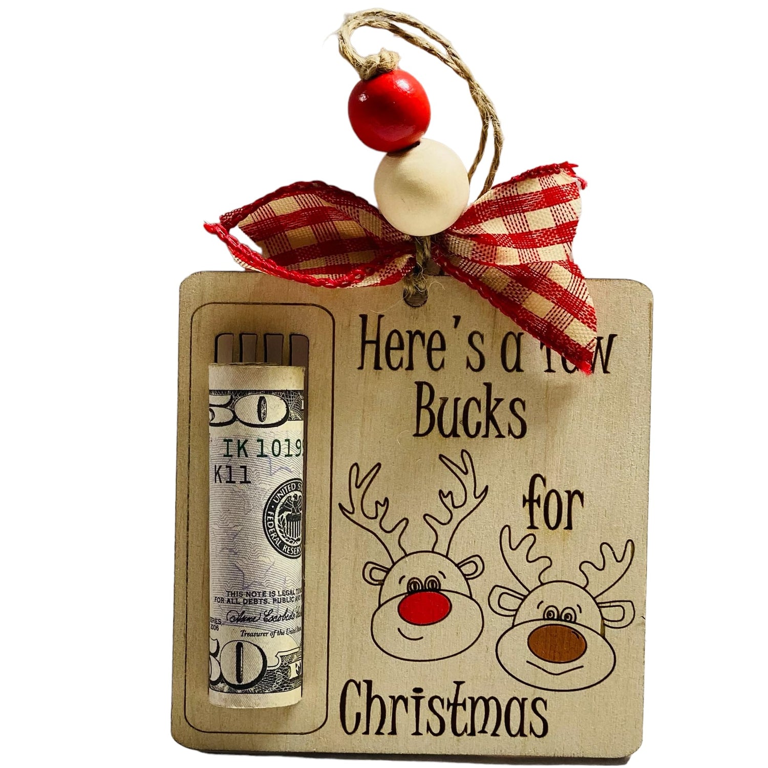 Wooden Money Holder - Christmas - Wooden - Few Bucks - Ornament - Gift for Him Her