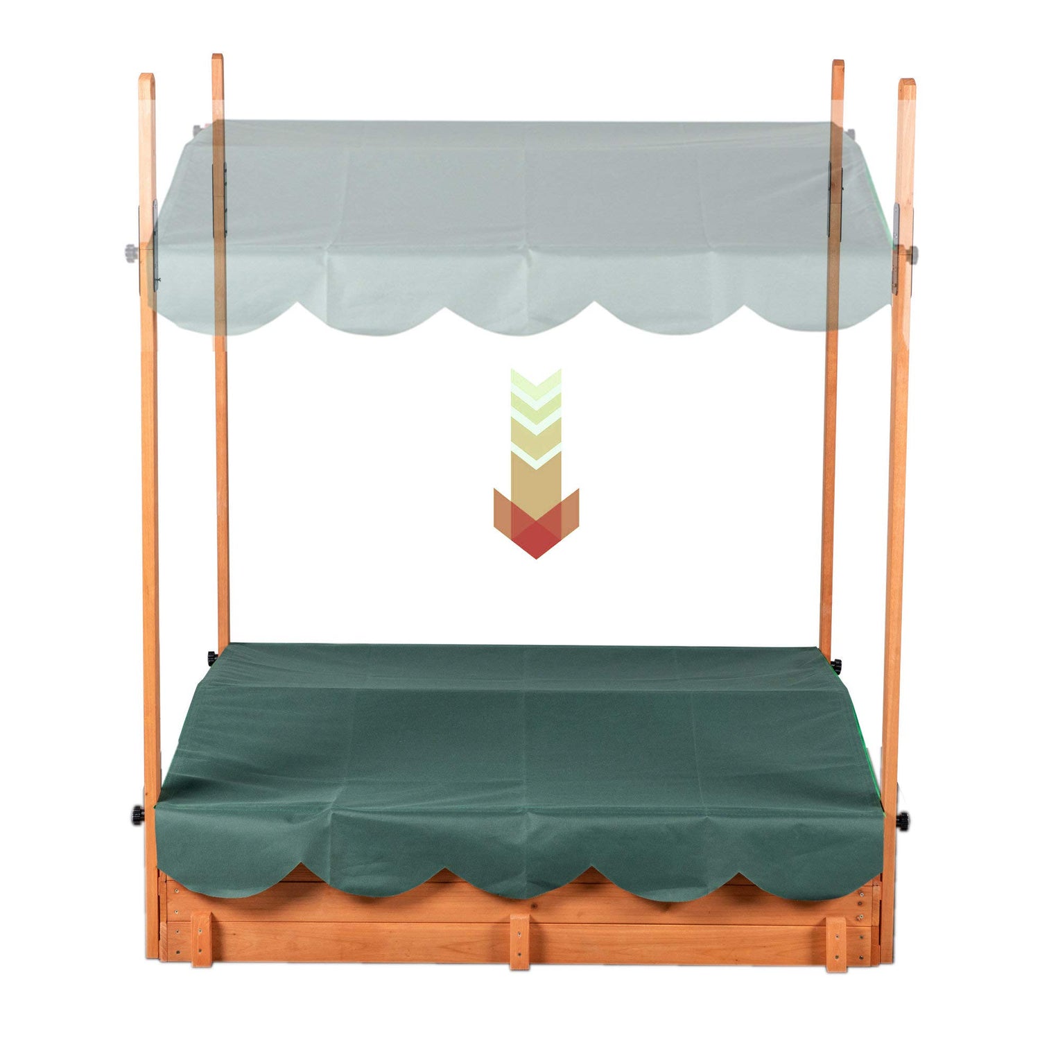 Wooden Outdoor Kids Sandbox Convertible Canopy Covered Sand Box Bench Seat Storage