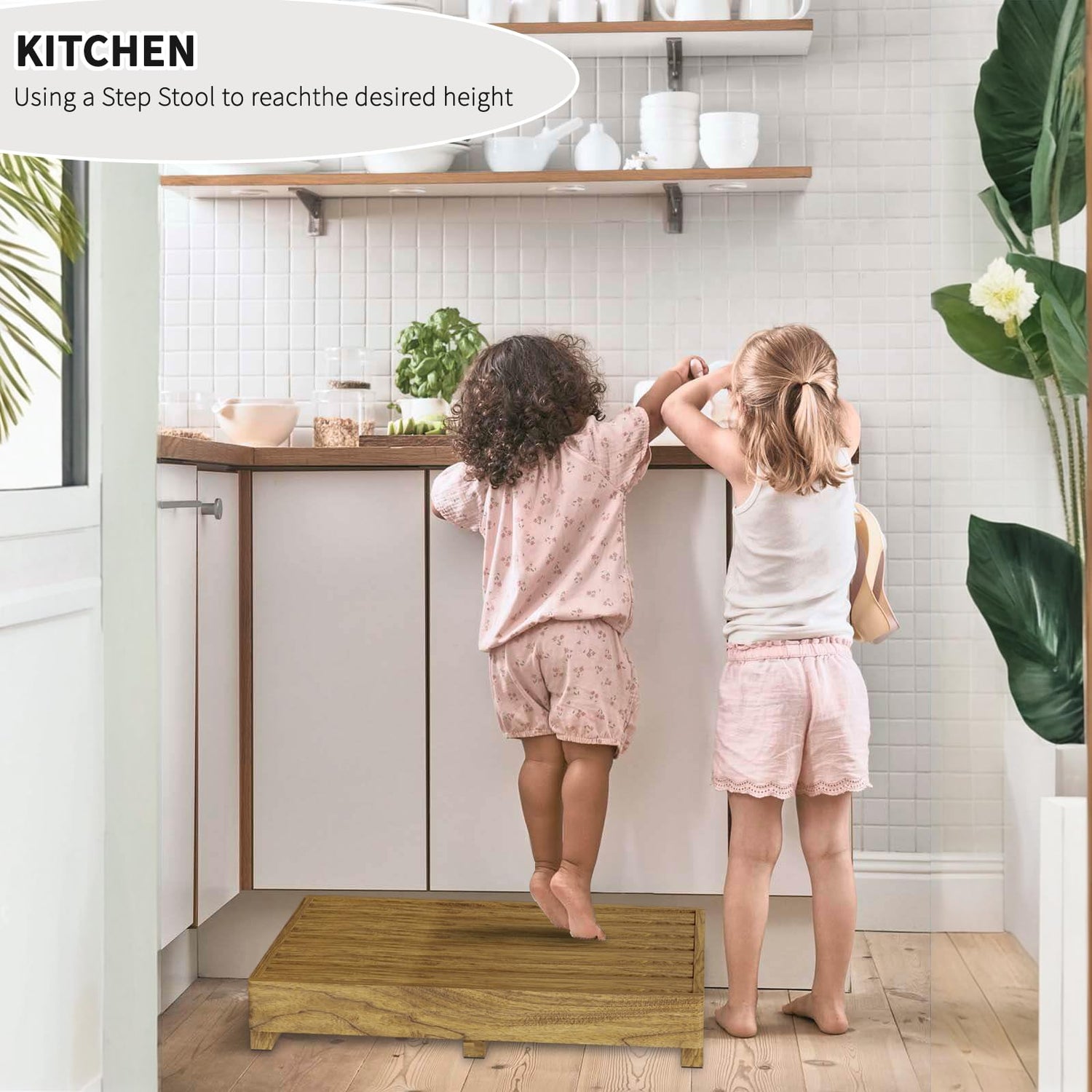 - Natural Acacia Wood - Measuring 25" L x 16" W x 3.5" H, the stepping stool made of thick Acacia wood, guarantee durability and long-lasting.