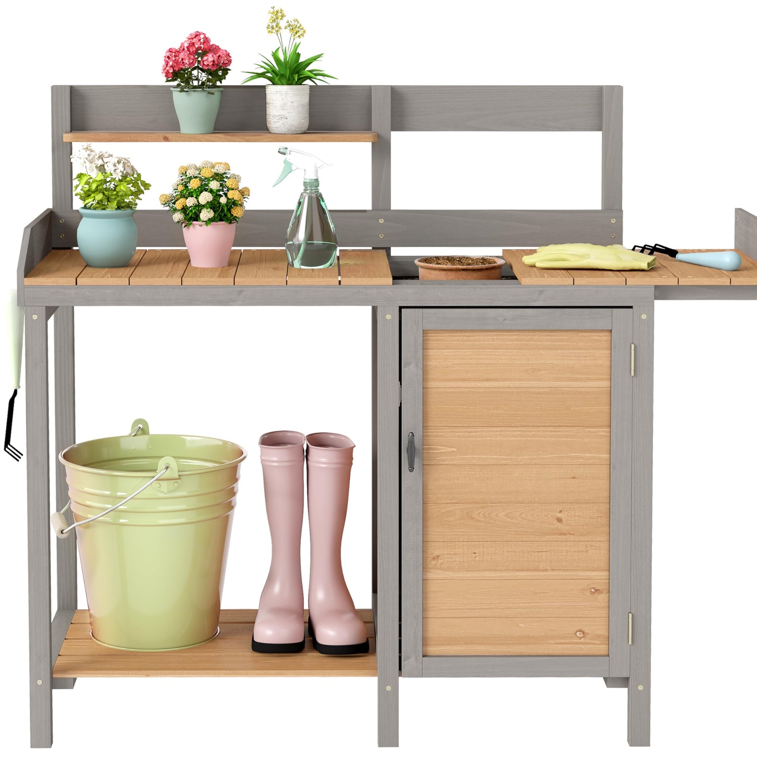 - Ample Storage Space: Potting station features spacious shelves and a cabinet, providing plenty of room to organize tools, pots, and essentials within easy reach.