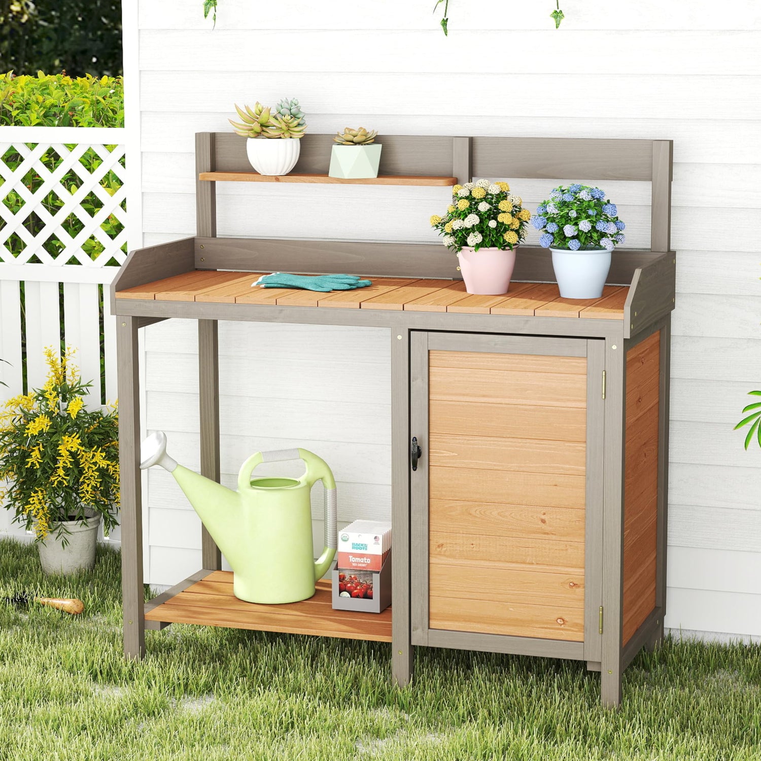 - Versatile Design: Potting table with storage serves as a multifunctional outdoor workstation, featuring a classic farmhouse style that complements any outdoor space.