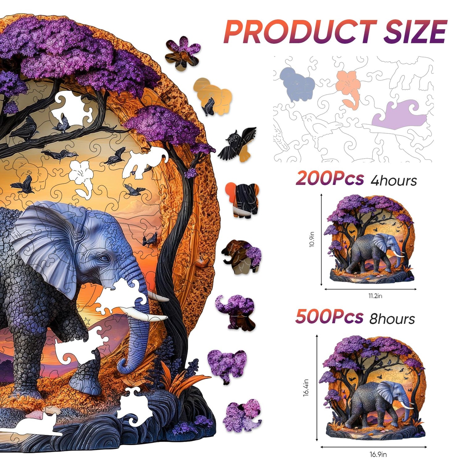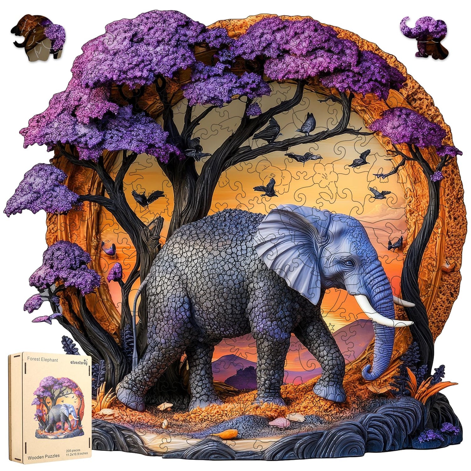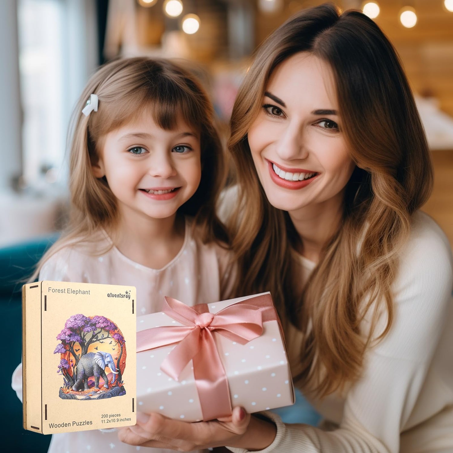 Wooden Puzzle for Adults 200 Pcs, 3D Vision Effect Elephant Forest Puzzle Unique Shape Advanced Jigsaw Puzzle, Challenge Wooden Jigsaw Puzzle for Family Game (11.2 x 10.9 in)
