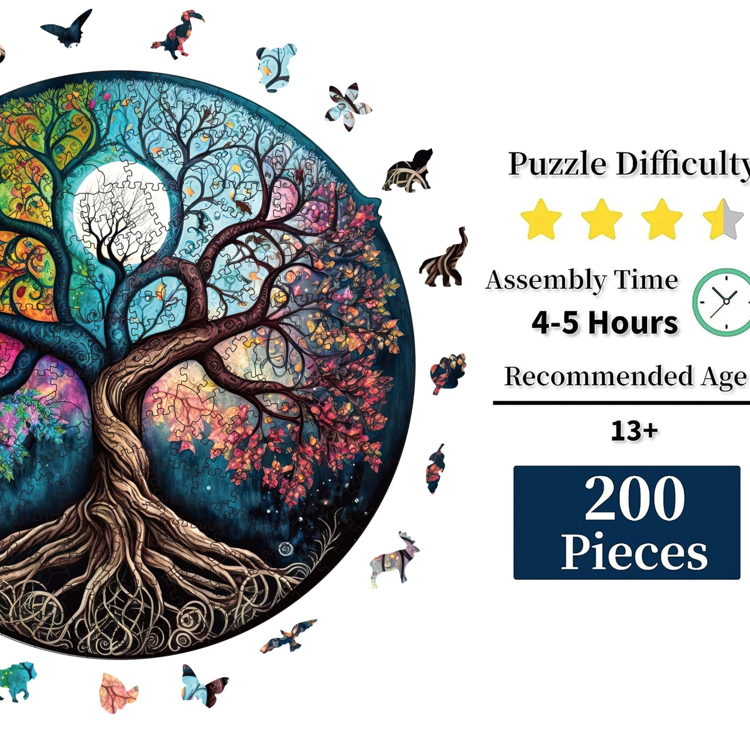 - Unique Wooden Puzzles: This wooden puzzles for adults is composed of 200 piece unique irregular shapes. Contains many different animal shapes, making the jigsaw puzzles time more interesting and enjoyable. It takes 4-5 hours to assemble, and the highly difficult animal wooden puzzle are very challenging.