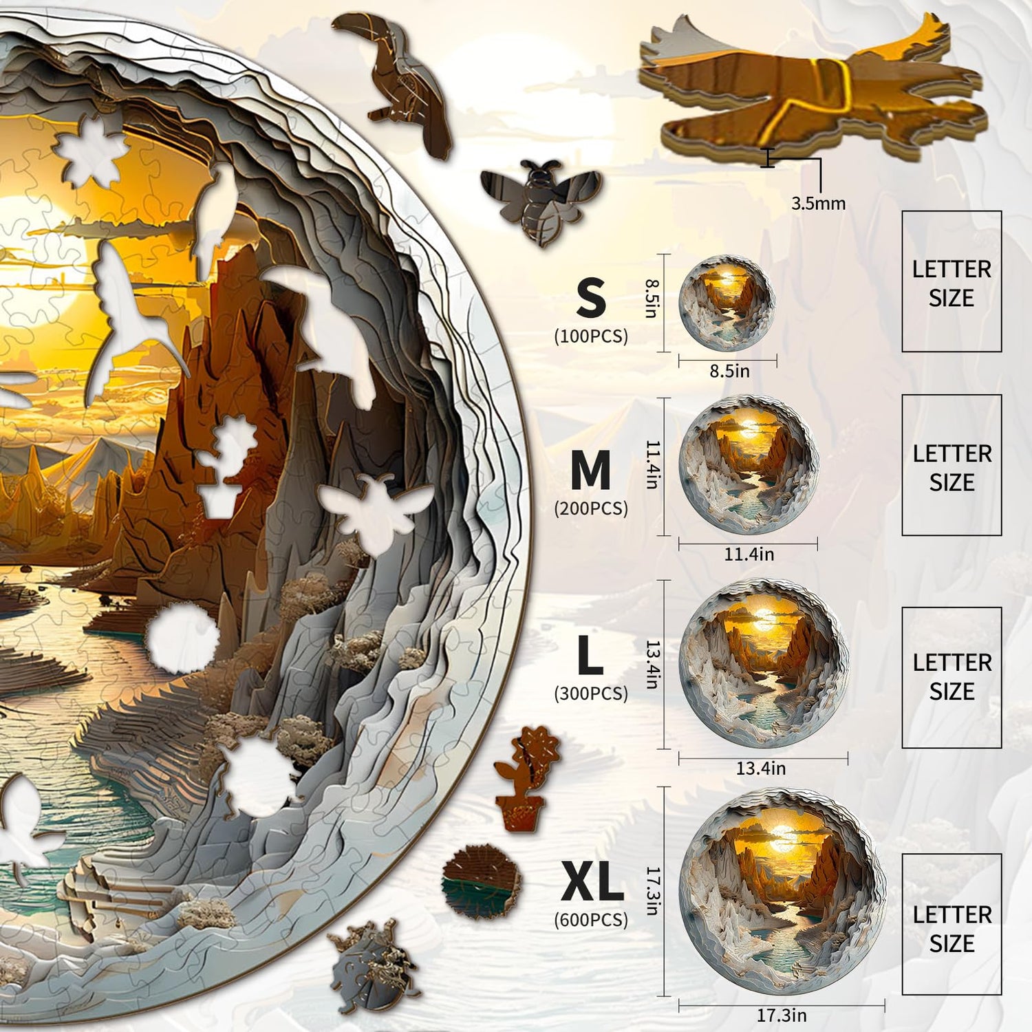 • 🧩[Naked Eye 3D Landscape] : Irregular wood cut,unique design, with a flat to present a 3D sense of the magnificent scenery. Let you in the process of assembling wooden puzzles, also get 3D beauty enjoyment. Inspired by beautiful and memorable scenes in life. Watching the sunrise in the distance and the river illuminated by the sunrise, immerse yourself in the free atmosphere of the beautiful scenery and trigger endless reverie.