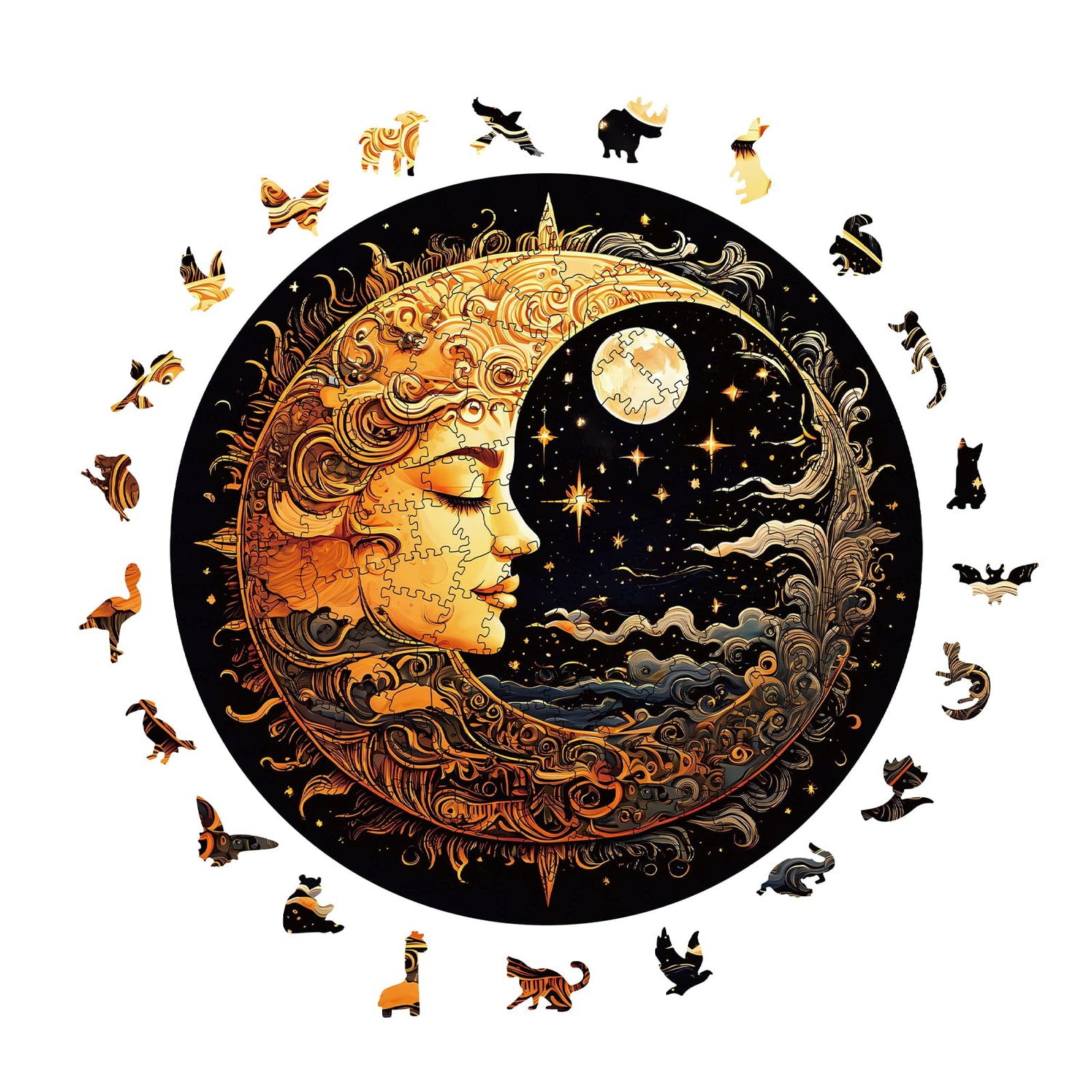 Wooden Puzzles for Adults, 200 Pieces Sun and Moon Uniquely Irregular Animal Shaped Wooden Jigsaw Puzzles, Creative Gift for Teenagers and Adults