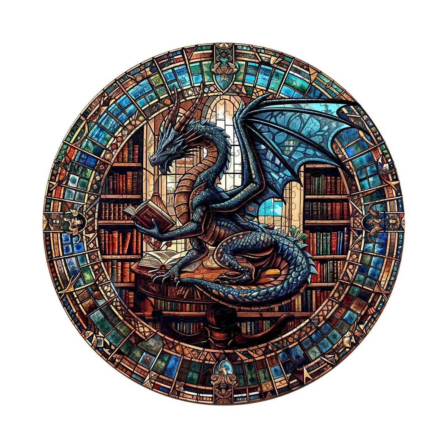 Wooden Puzzles for Adults - Dragon's Library Wooden Jigsaw Puzzles for Adults 200 Pieces, Unique Shape Wooden Dragon Puzzle, Wood Puzzles Adult, Gifts for Friends, Family, Home Decor (M-11.4*11.4 In)