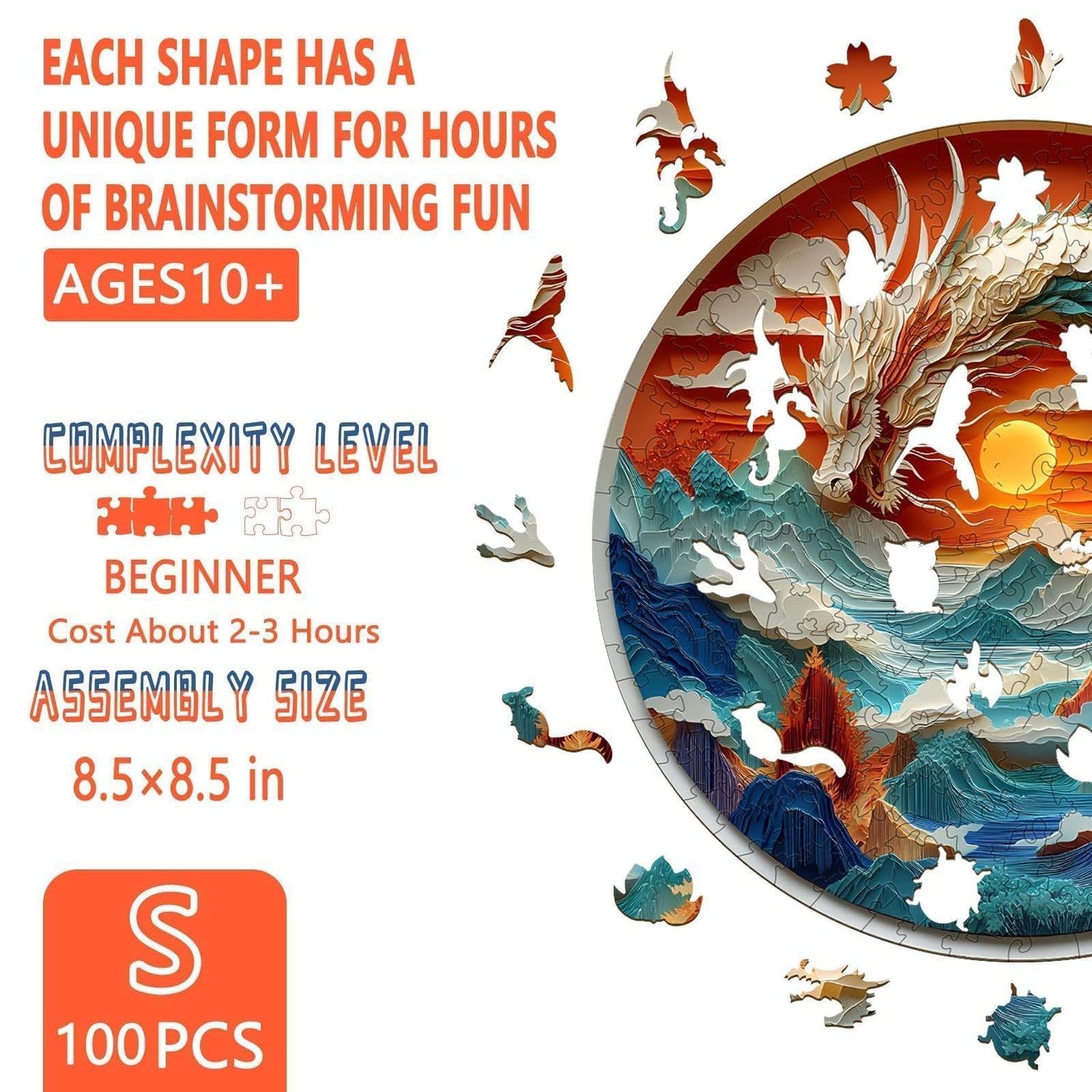 - ๐ Colorful Dragon Themed Puzzle Set - Do you want to have fun with puzzles? Our wooden jigsaw puzzle is a great choice. This puzzle depicts a colorful dragon in the art style of paper sculpture. The whole picture will show amazing visual effects when you are finished. The wood puzzle is cut into unique shapes to give you an interesting experience. Come and find the special beauty in wooden toys!