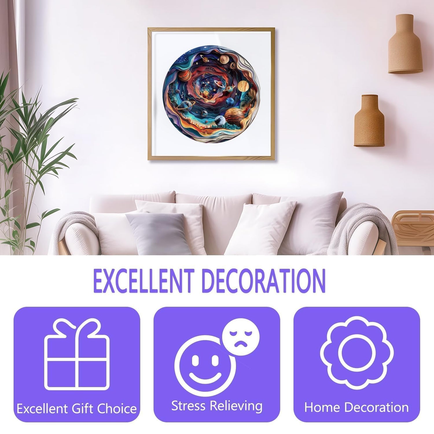 - 🪐 3D Universe Themed Puzzle Set - Do you want to have fun with puzzles? Our wooden jigsaw puzzle is a great choice. This wooden jigsaw puzzle depicts a mysterious and unfathomable universe world. The whole picture shows a magical 3D visual effect on a flat surface. Planets converge in the universe, and the entire picture is colorful, bringing you an interesting experience. Come and find the special beauty in wooden toys!