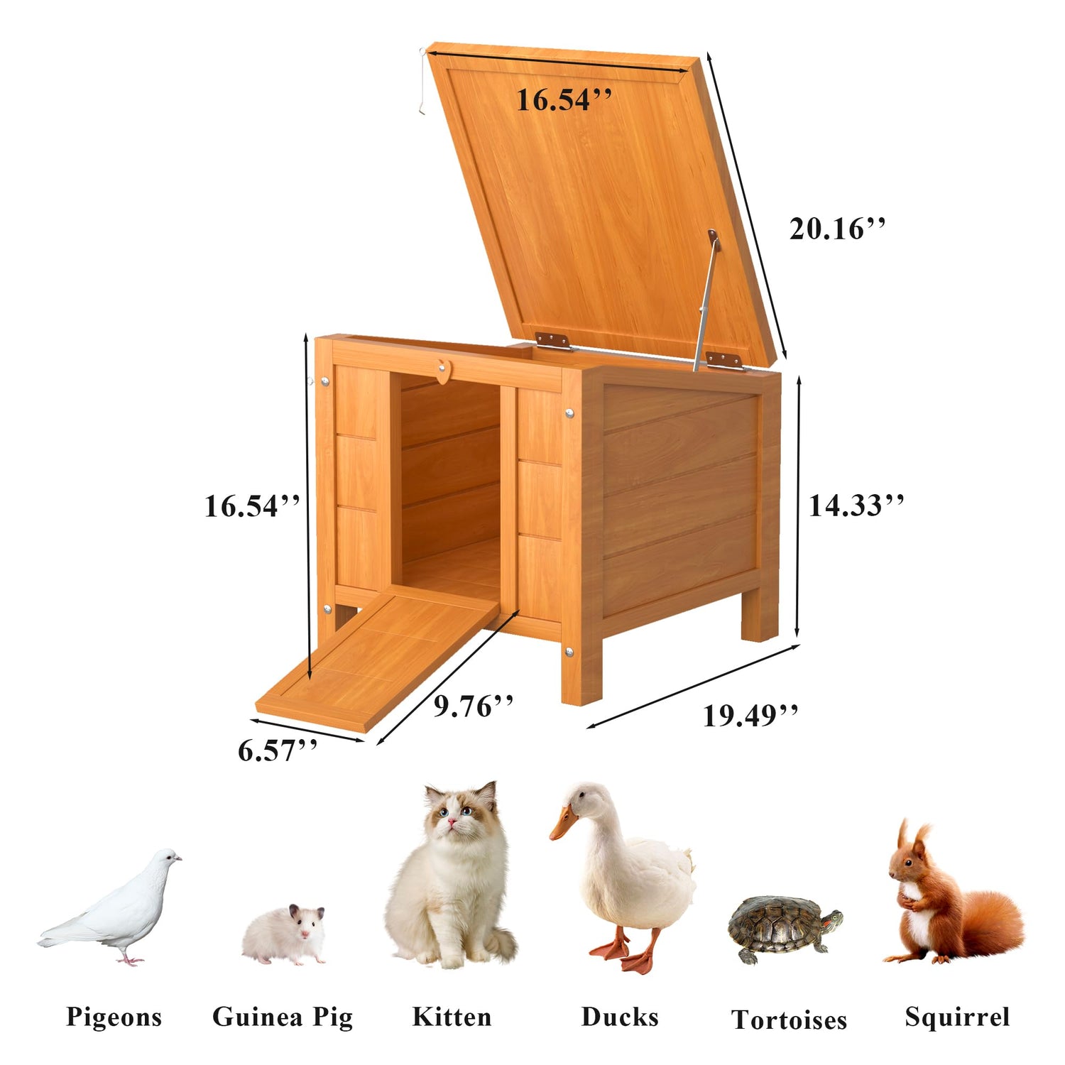 Wooden Rabbit Hutch Indoor and Outdoor, Weatherproof Cat House Hideout, Guinea Pig Cages with Lockable Door, Idea for Squirrel, Ducks, Tortoises, Pigeons, Small Animal - 16.93"L x 16.54"W x 20.08"H