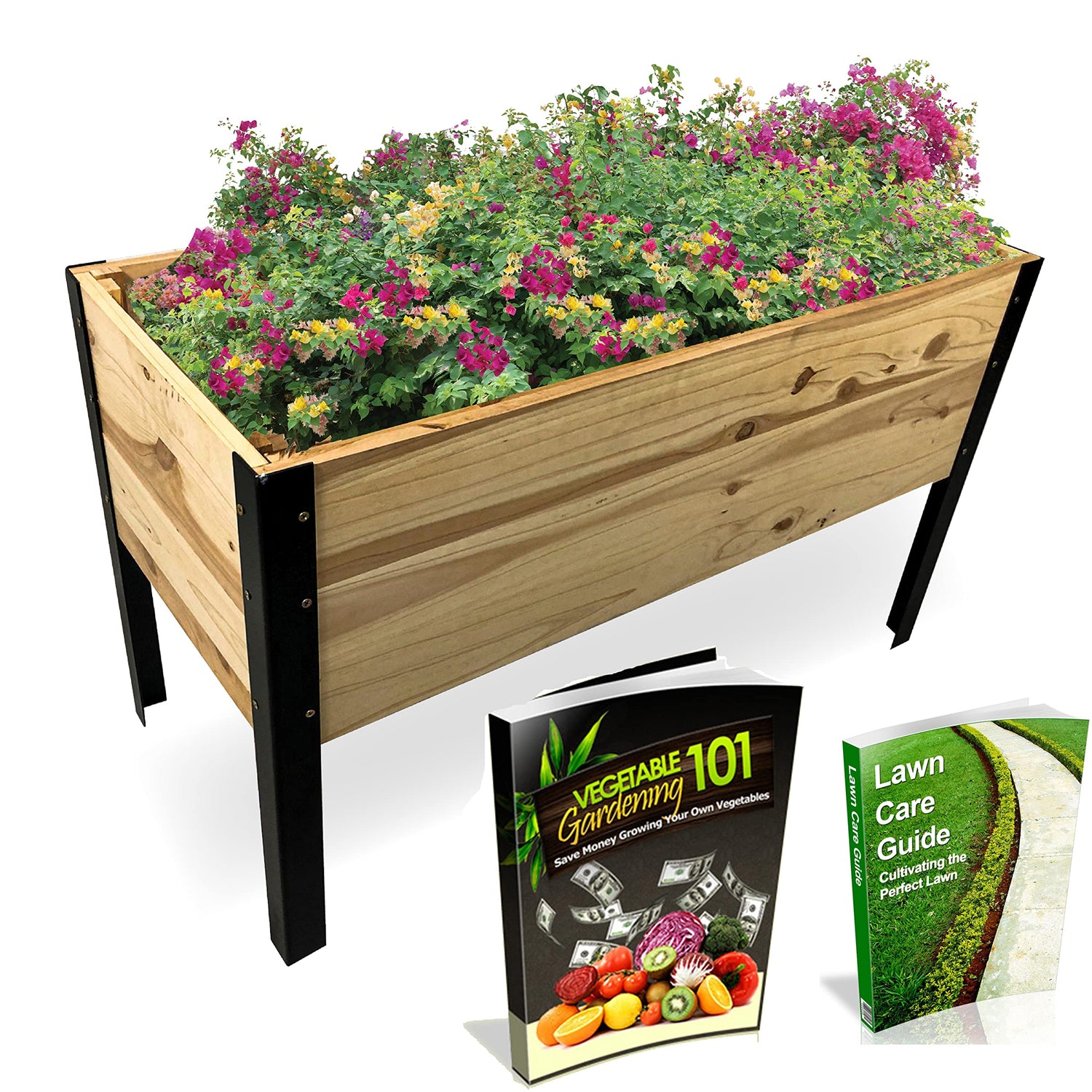 Wooden Raised Planter Box with Steel Legs-Elevated Outdoor Patio Garden Bed Kit to Grow Vegetables -Natural Rot Resistant Wood - 35.5'' W x 15.5'' L x 21.7'' (Tall) - Backyard Expressions (911214-NW)
