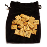 - WOODEN RUNE SET: Includes 24 carved wooden runes, one blank rune, a booklet and bag.