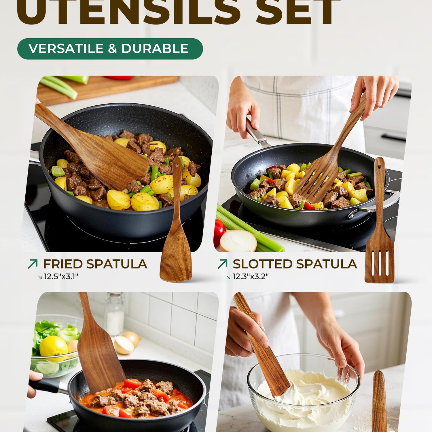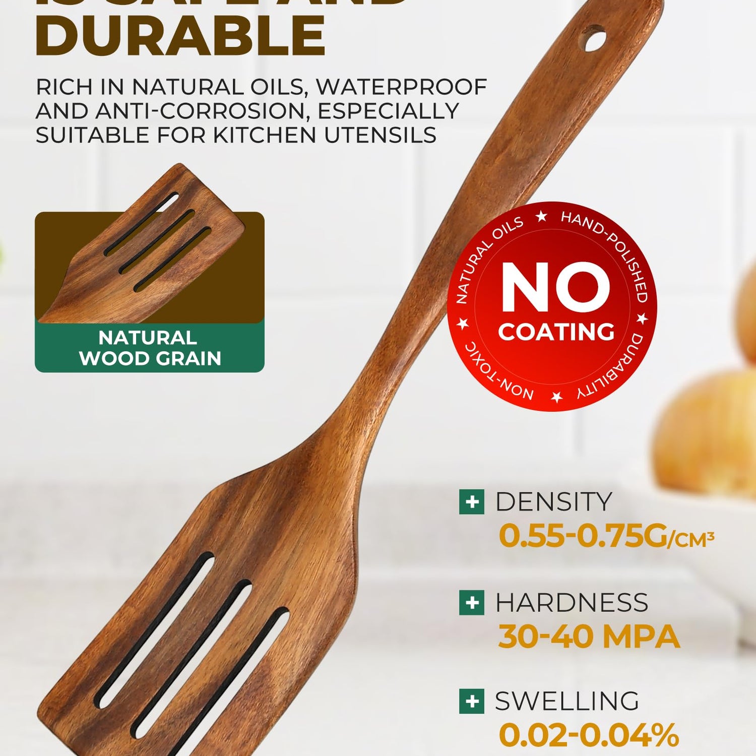 - Versatile Cooking Essentials: These Teak Wood Utensil Set are perfect for a wide range of tasks, from flipping pancakes and stirring sauces to serving hearty meals. No matter the dish, this set has you covered.