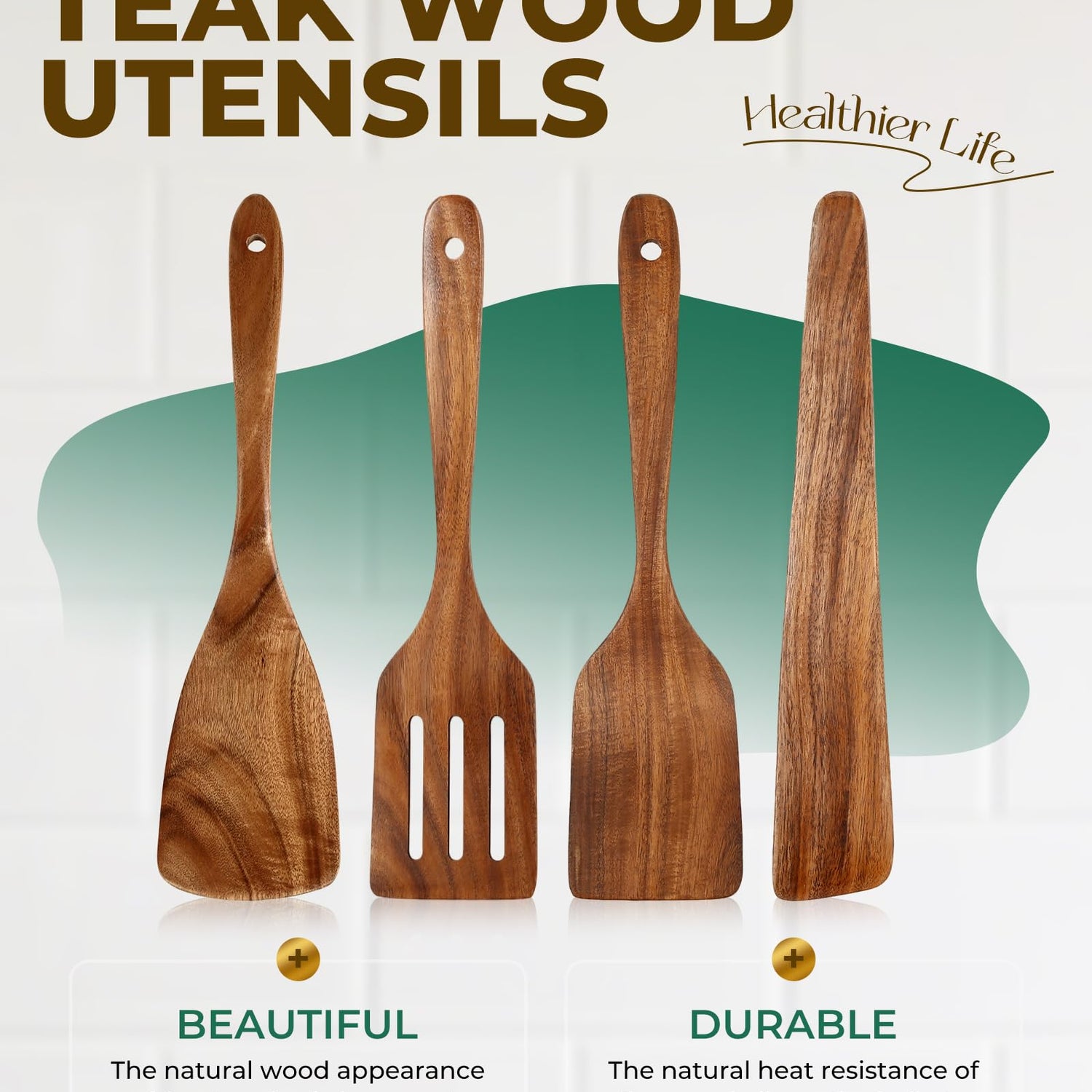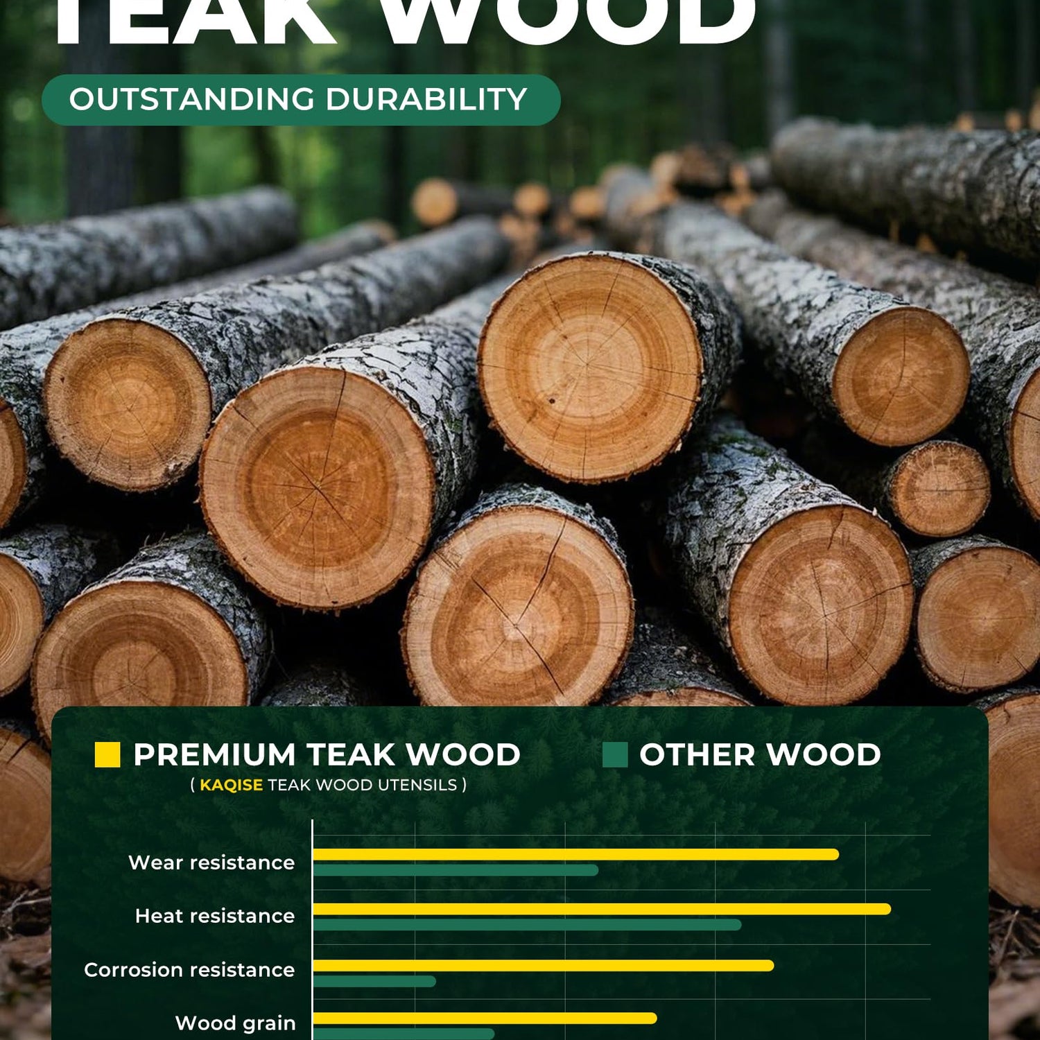- Natural & Safe: Made from high-quality, natural teak wood treated with food-safe oil, this Natural Teak Wood Utensil Set is safe for everyday use. It not only enhances your cooking but also brings an elegant, natural aesthetic to your kitchen.
