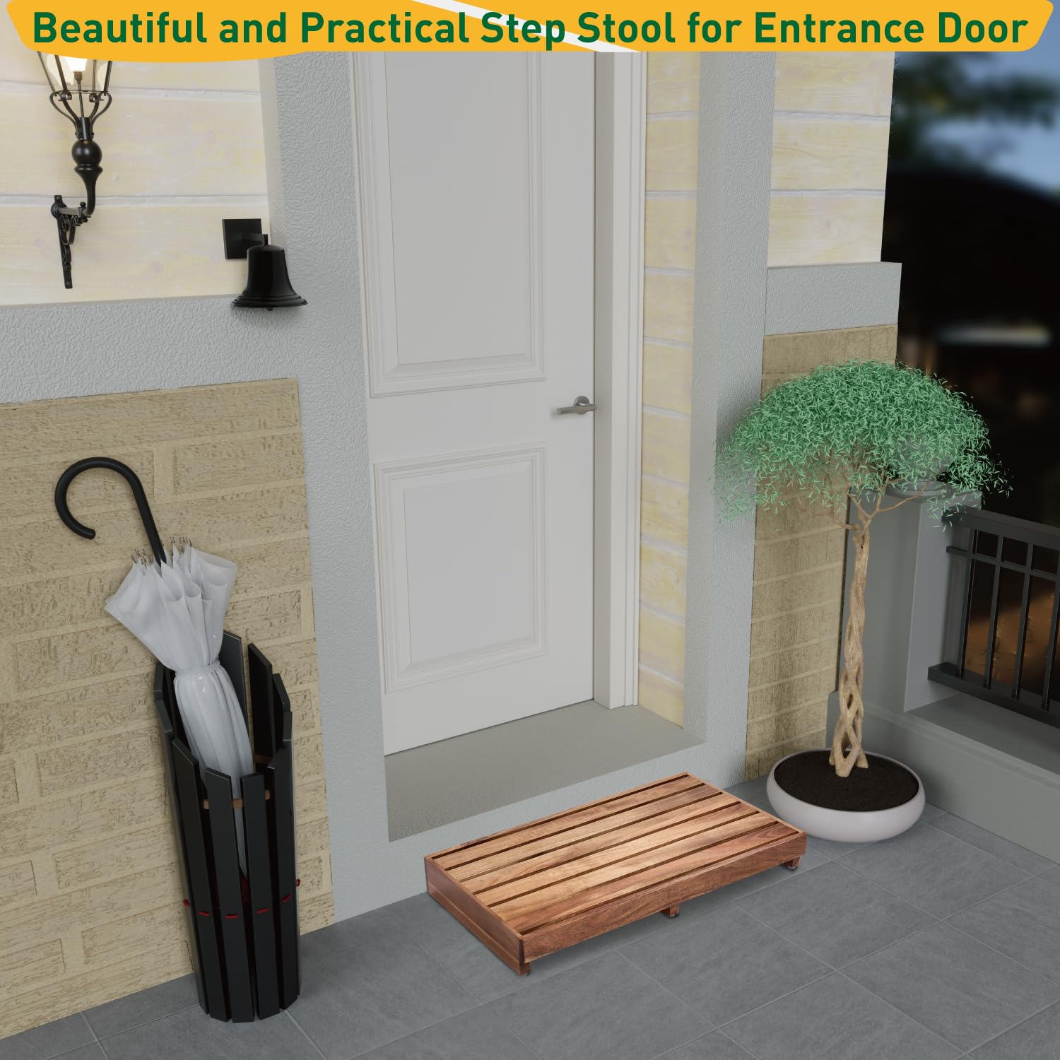 - Indoor and Outdoor: Buruis wooden footstools are suitable for both indoor and outdoor use. You can place them beside your bed, under the stairs, in the kitchen, or in the bathroom, where they maintain their luster indoors. They can also be used on porch steps, in the yard, or in the garden; however, the color of the acacia wood may darken when exposed to sunlight, rain, or snow